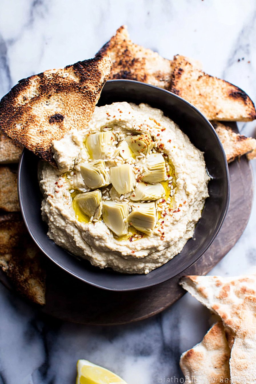 Keywords: artichoke hummus, best hummus recipe, carrot hummus recipe, easy appetizer, hummus recipe, lemon hummus recipe, mediterranean hummus recipe, tahini dip, vegan hummus recipe, white bean hummus recipe
