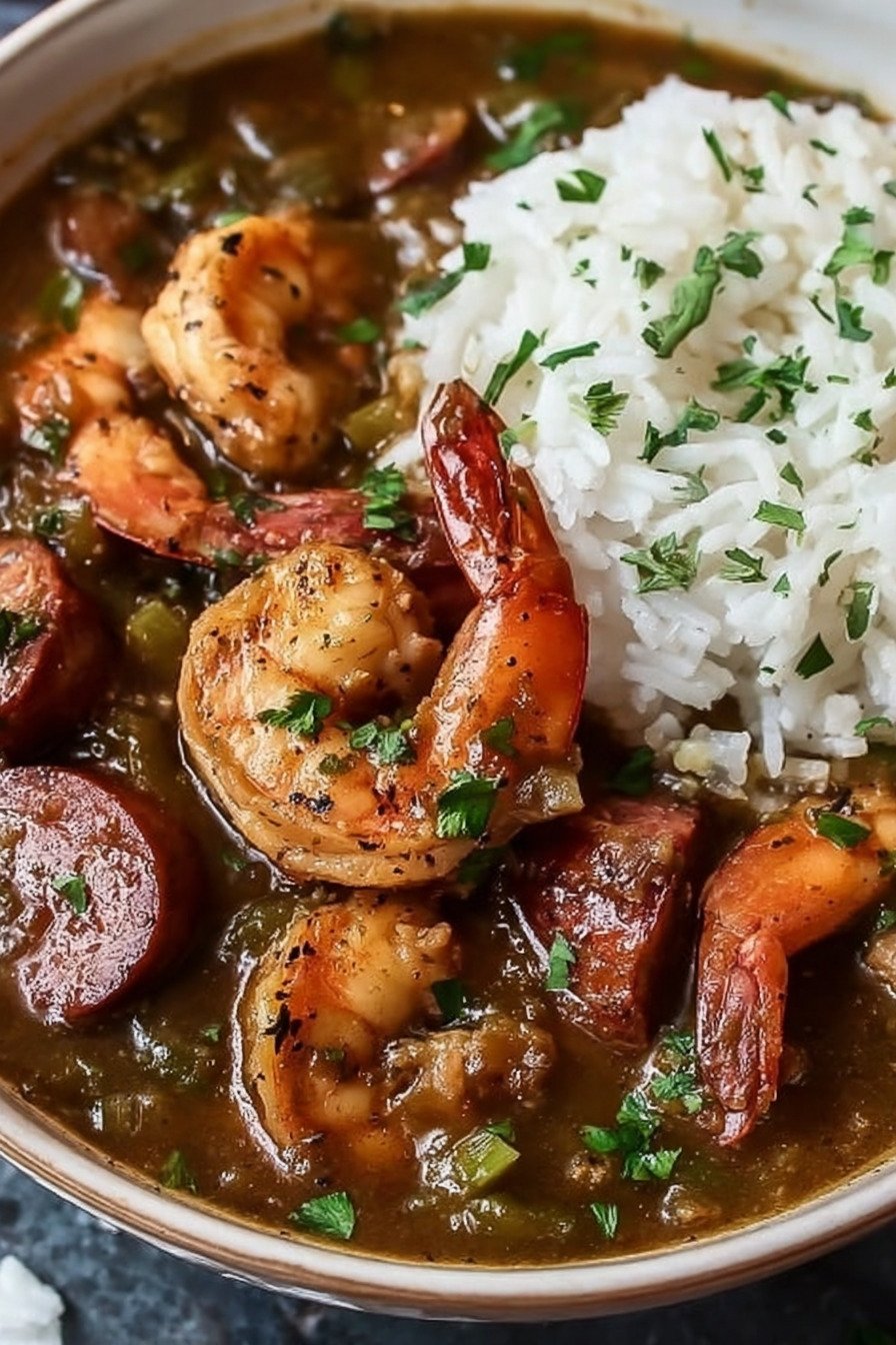 When I cook this gumbo recipe, my whole kitchen smells like a tiny corner of Louisiana. I stir the roux slow, watch it turn deep brown, and try not to rush it. That rich base gives you an authentic gumbo recipe feel right from the start. If you have searched for a gumbo recipe crockpot version, a healthy gumbo recipe, the best gumbo recipe authentic to its roots, a vegetarian gumbo recipe, or a bold cajun gumbo recipe, you are in the right place. We build flavor step by step. I toast the flour in oil and keep moving the spoon. My arm gets a small workout, but it is worth it. The onions, celery, and bell pepper hit the pot and release a sweet smell that makes me smile every time. The broth simmers, the spices bloom, and the sausage and chicken soak up all that goodness. I like to serve it over hot rice with a scoop that sinks right in. The texture feels thick yet smooth. Each bite brings warmth and depth. When friends come over, they ask for seconds before they finish the first bowl. I laugh and grab the ladle. That is how you know dinner went right.
