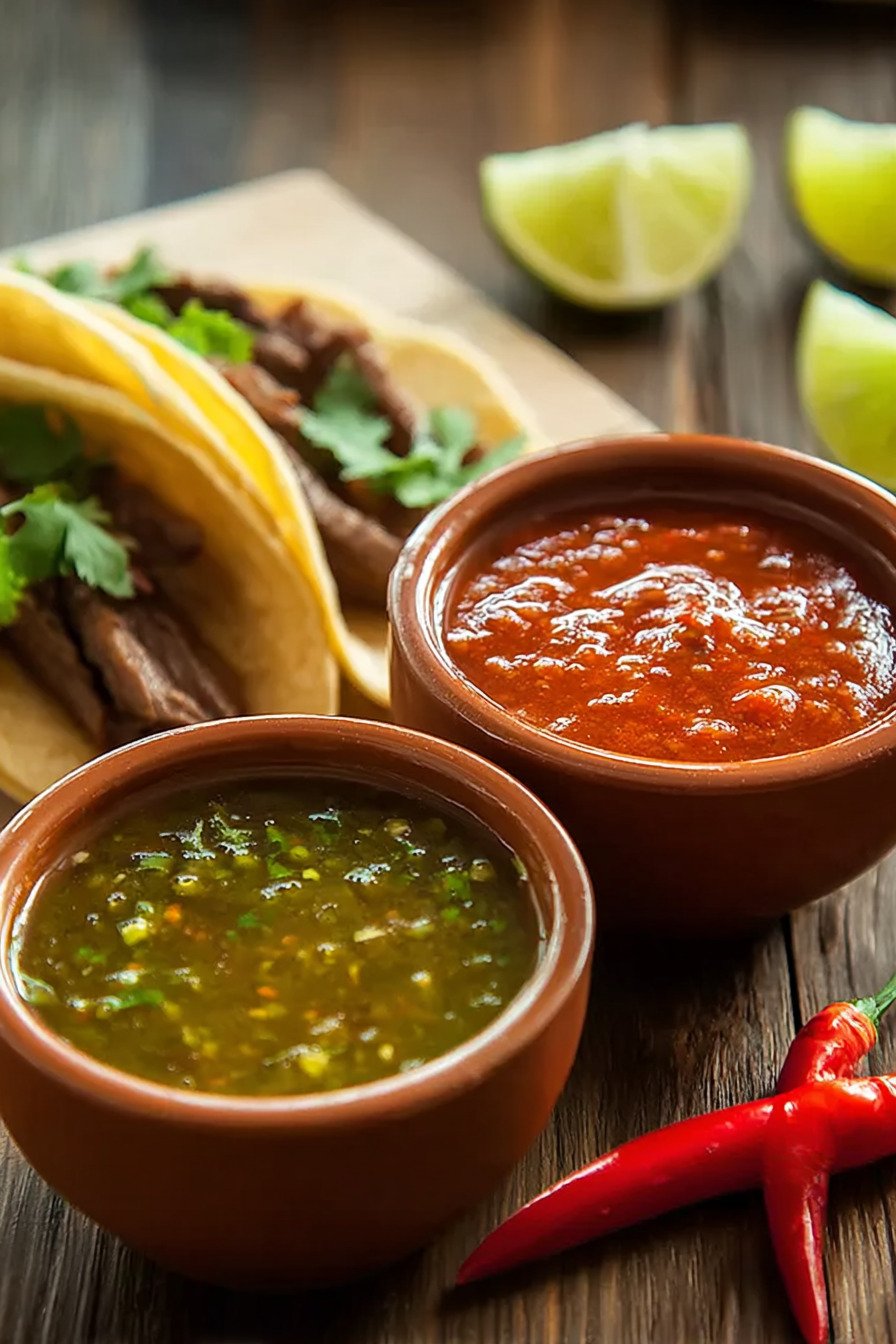 This recipe is excellent for making ahead because the flavors continue to develop as the sauces rest. You can prepare both the green and red sauces a day or two in advance, then refrigerate them in sealed jars until you are ready to serve. In many cases, they actually taste even better after a few hours in the fridge.
