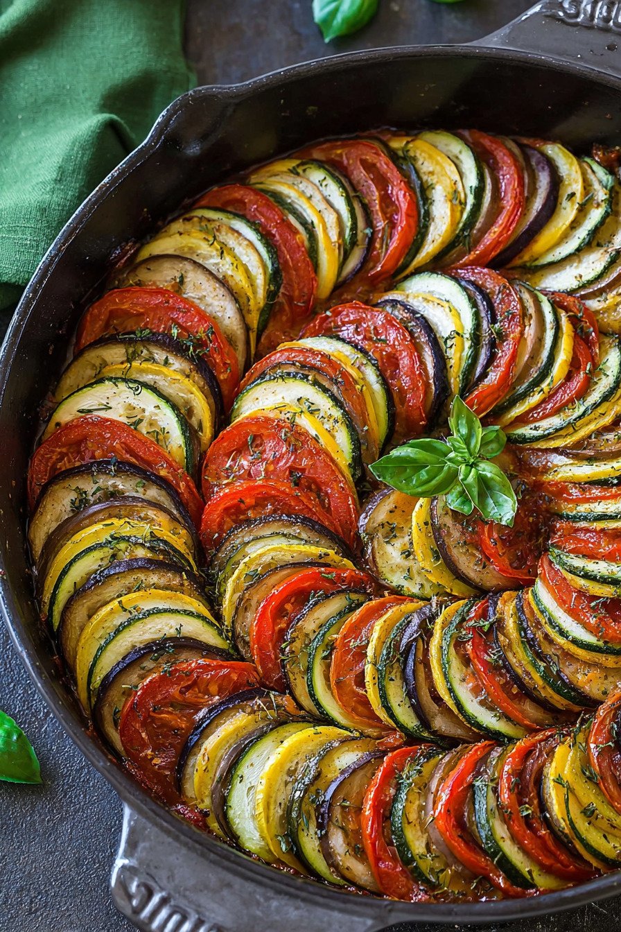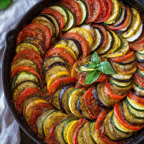 If you are craving a colorful, cozy dish packed with vegetables, this ratatouille recipe is a wonderful choice for dinner or meal prep. This ratatouille recipe easy enough for weeknights delivers layers of tender zucchini, eggplant, tomatoes, and peppers baked in a rich tomato base. Whether you are searching for an easy ratatouille recipe or hoping to make the best ratatouille recipe for family and friends, this oven-baked version brings classic comfort with simple steps. One of the best things about this fall ratatouille recipe is how beautifully it highlights seasonal produce while still feeling light and fresh. The sliced vegetables bake until silky and flavorful, making every bite look as lovely as it tastes. Even though this dish is savory, it pairs surprisingly well with other menu favorites, so you can serve it alongside a cake recipe for dessert or a salad recipe for a complete spread. This baked vegetable dish is ideal when you want something wholesome, rustic, and impressive without too much effort. From a ratatouille recipe easy enough for beginners to an easy ratatouille recipe that feels elegant on the table, this is the kind of meal you will come back to often. If you have been looking for the best ratatouille recipe to add to your dinner rotation, this fall ratatouille recipe is a delicious place to start.