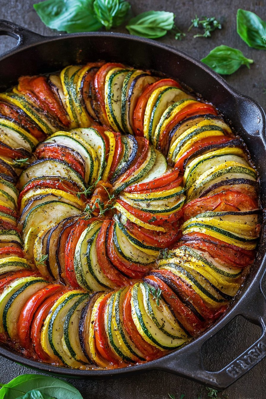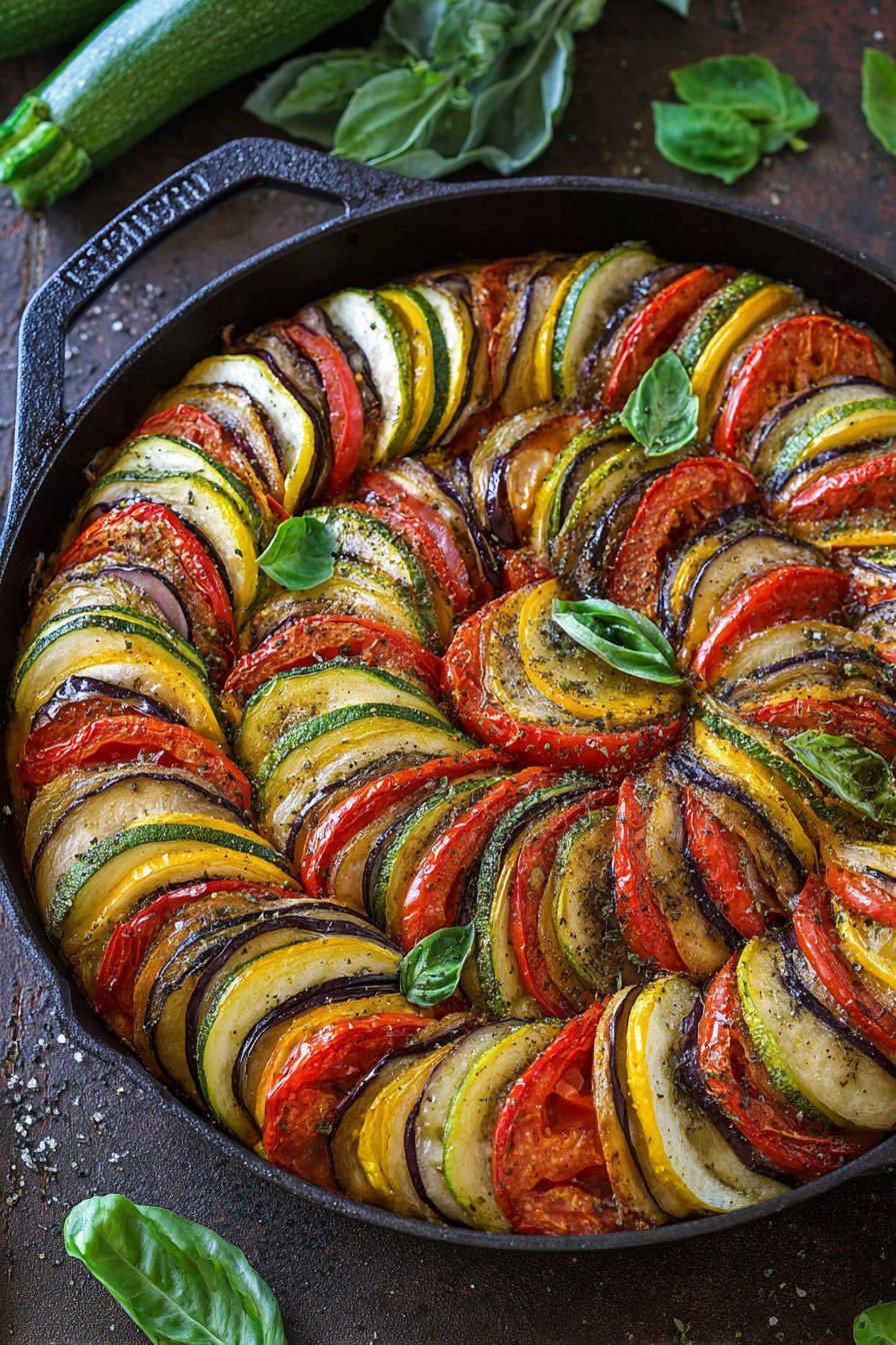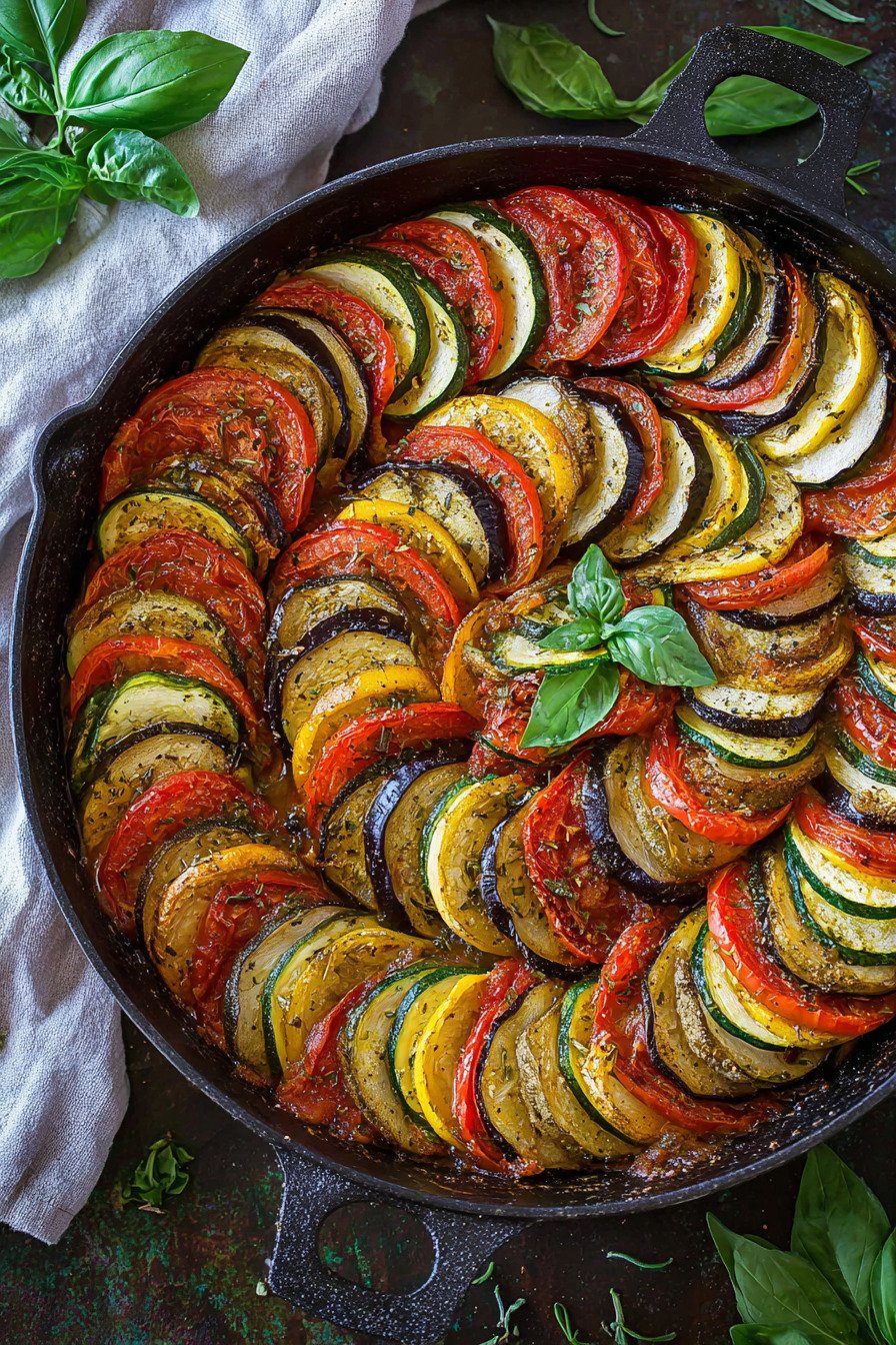 • This ratatouille recipe is packed with colorful vegetables, rich tomato flavor, and a beautifully tender baked texture.