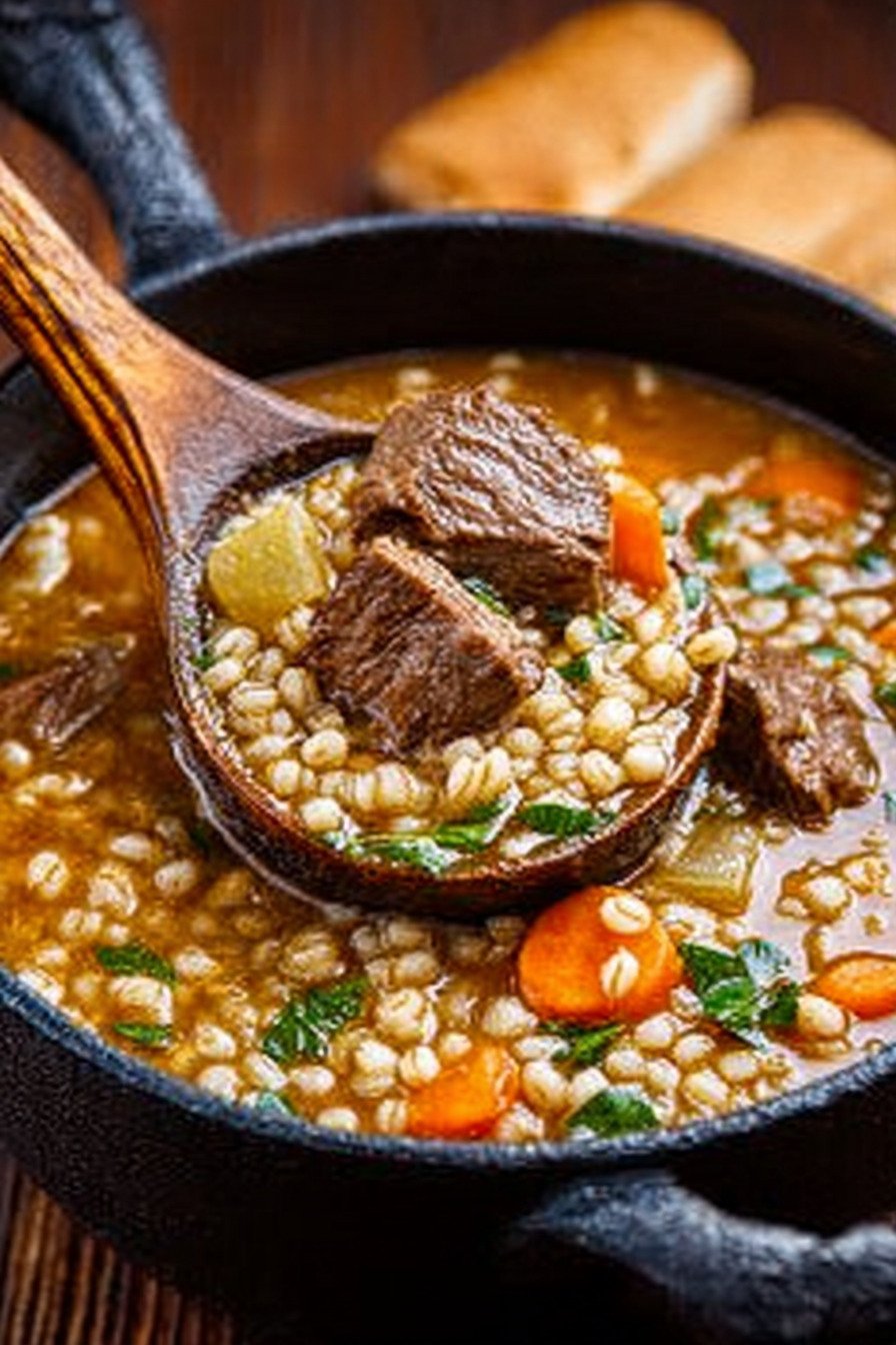 I love Soup Recipes and this one sits near the top of my list. Soup Recipes that feel cozy and taste bright make long days better. Two ladles in and you will understand. The beef turns tender. The barley swells and gives a soft bite. The broth shines with a light sheen. It feels like a hug you can eat. We share a pot and the table gets quiet, the good kind of quiet.