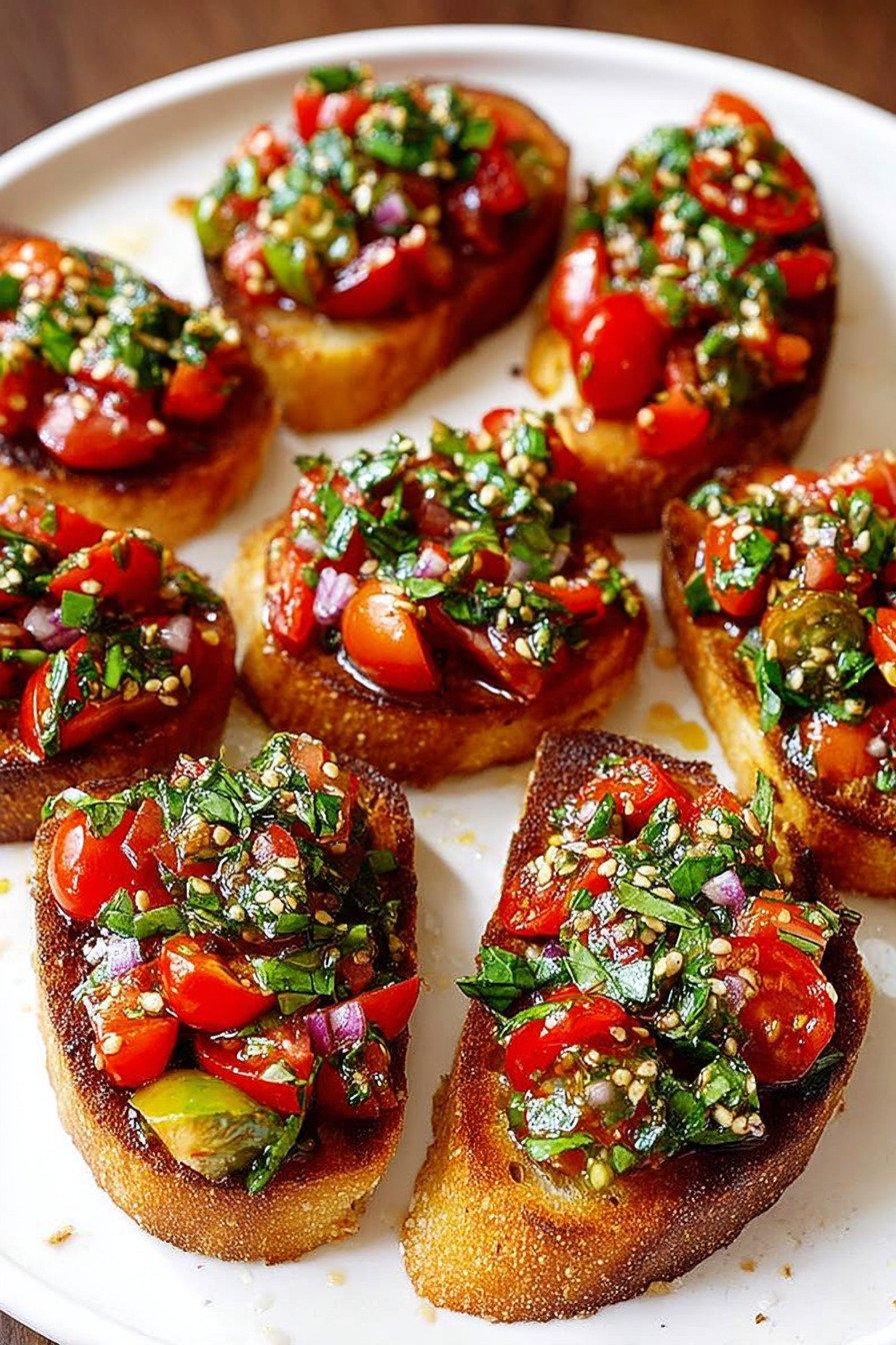 If you’re searching for the ultimate bruschetta recipe, you’ve just found your go-to guide. This best bruschetta recipe combines crisp, golden bread with juicy tomatoes, fragrant basil, and rich olive oil for a bite that tastes like summer in Italy. Whether you need a simple bruschetta recipe for a last-minute gathering or a fresh bruschetta recipe that highlights seasonal produce, this version delivers vibrant flavor with minimal effort. What makes this the best bruschetta recipe is its balance of texture and taste. The toasted baguette slices provide the perfect crunch, while the tomato topping remains light, bright, and refreshing. From a classic fresh bruschetta recipe to creative twists like a mushroom bruschetta recipe or a bruschetta recipe mozzarella variation, this guide walks you through mastering the base so you can customize it with confidence. You’ll also discover how to turn this into a stunning caprese bruschetta recipe by layering creamy mozzarella and ripe tomatoes, or elevate it with savory mushrooms for a rich mushroom bruschetta recipe option. No matter which variation you choose, this bruschetta recipe proves that a simple bruschetta recipe can still be the best bruschetta recipe when made with quality ingredients and proper technique.