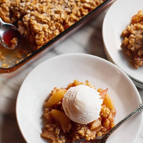You can prepare this apple crisp recipe ahead by slicing the apples and mixing the filling ingredients in advance. Store the mixture in the refrigerator for up to 24 hours until you’re ready to bake.