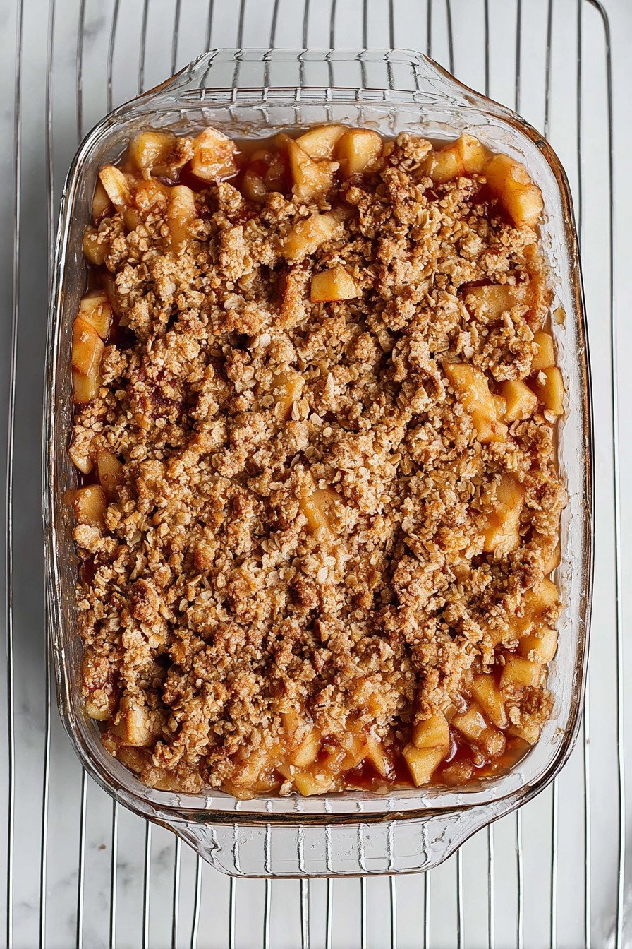 4. Bake for 35–40 minutes until the topping is golden brown and apples are tender.