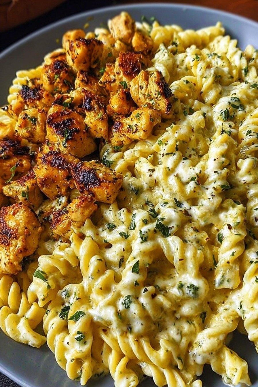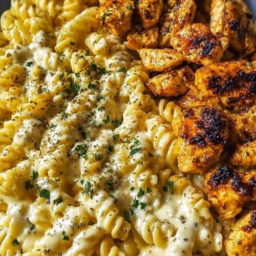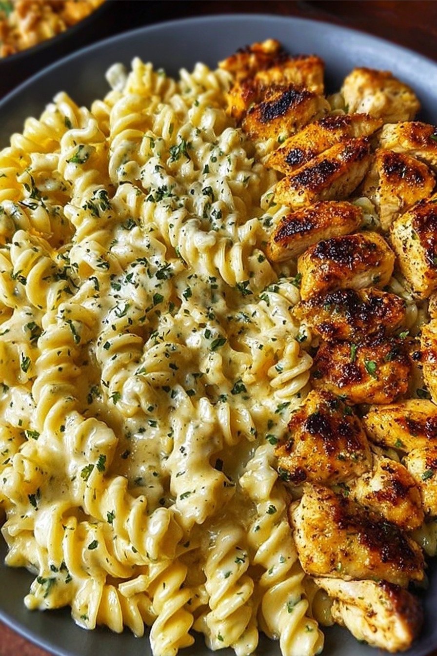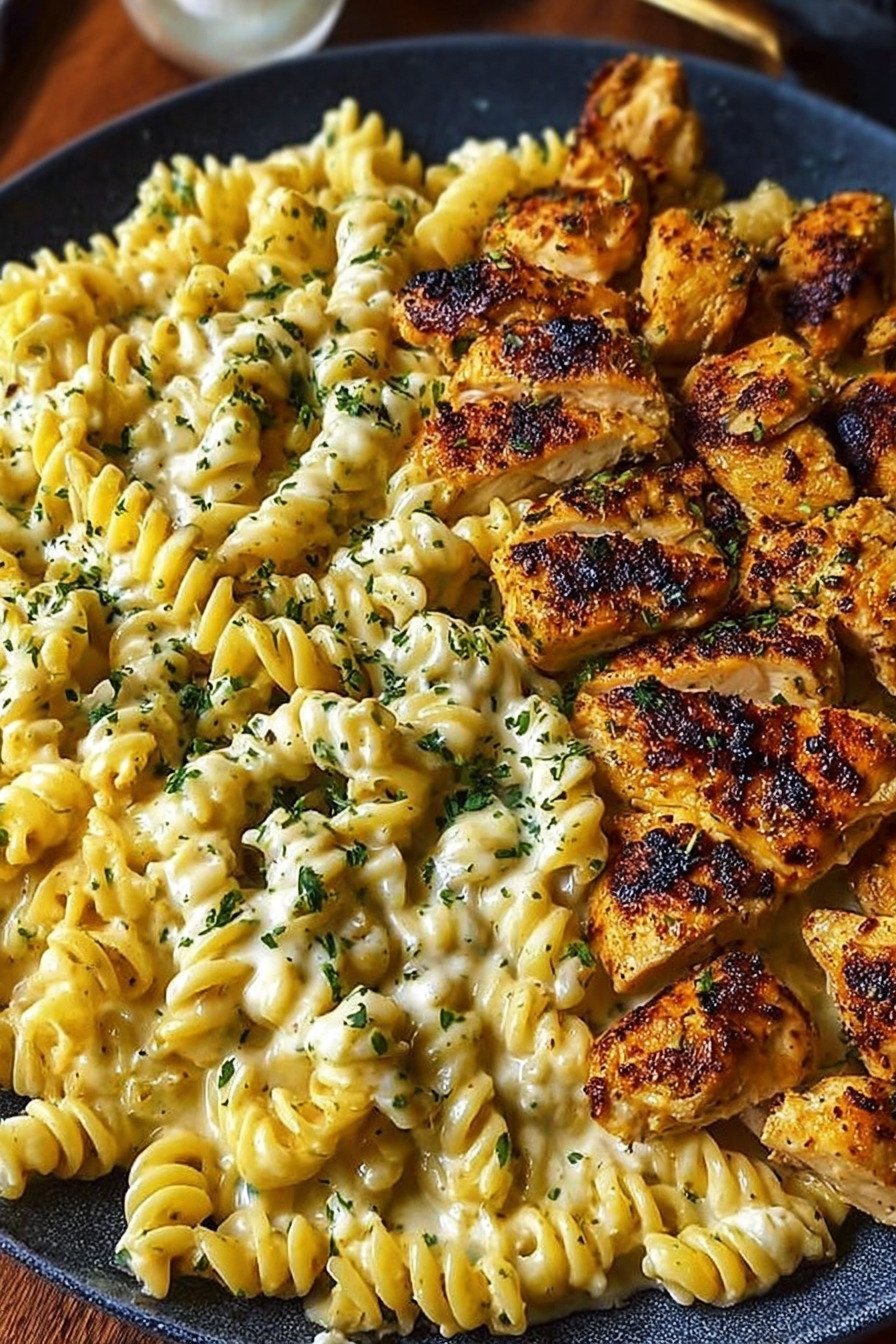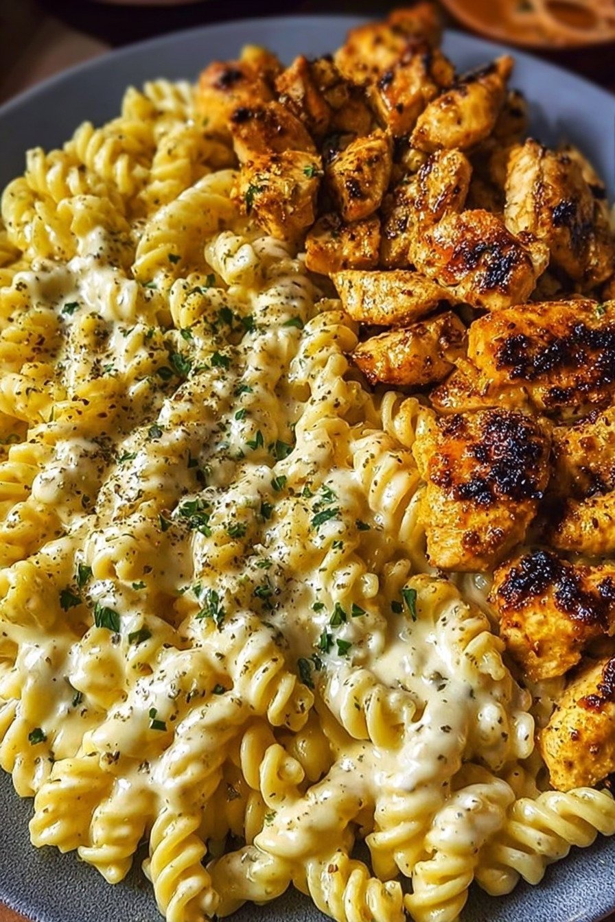 Cheesy Alfredo Twisted Pasta with Garlic Butter Chicken