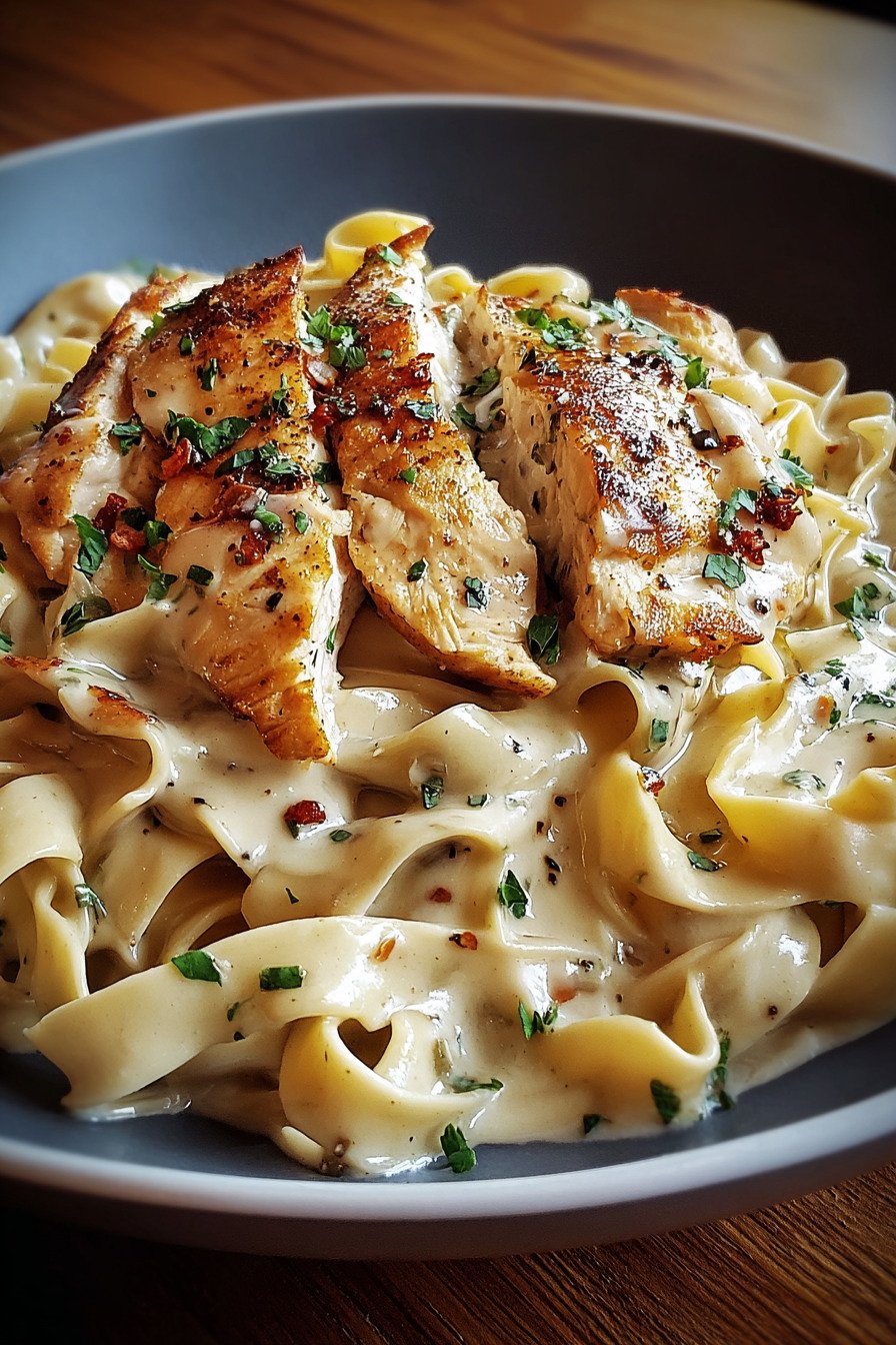 Use moderate heat for the sauce. Butter likes gentle care. Garlic burns when rushed. When the sauce looks glossy yet loose you are on track. Grate cheese fresh if you can. The flavor hits harder and the melt feels smooth. With these habits this dish joins your steady list of creamy chicken pasta dinners.