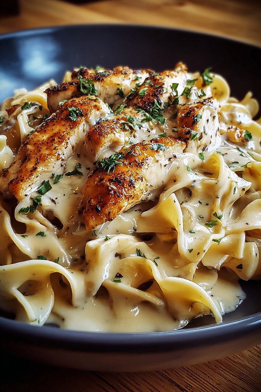 We start with pantry friends. Butter. Garlic. Broth. A little cream. Egg noodles or a short cut pasta. Boneless chicken breast or thigh. Salt and pepper. That is it. The sauce coats every strand without feeling heavy. The bite lands clean and cozy. You can grate a little parmesan for a nutty note. I sometimes add a fresh herb to brighten the bowl. Think parsley or chives.