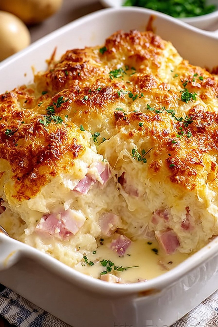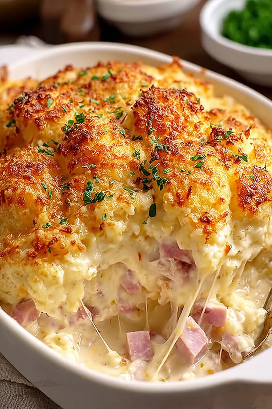 What will you love. The texture shift from creamy middle to crisp top. The clean prep that uses one bowl and one dish. The way leftovers behave and taste even better the next day. What stays flexible. The cheese mix the ham amount the herb finish. What pairs well. A green salad with a sharp vinaigrette or roasted broccoli with lemon. What I skip. Fussy steps that slow dinner and dirty more dishes. We both want food that works on a weeknight and still feels special. This one checks that box with ease.