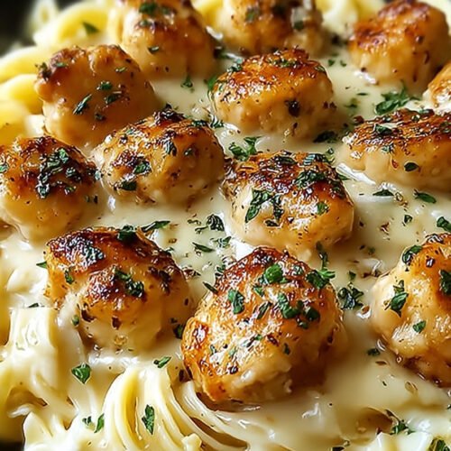- 9) Garlic Butter Chicken Bites with Creamy Parmesan Pasta