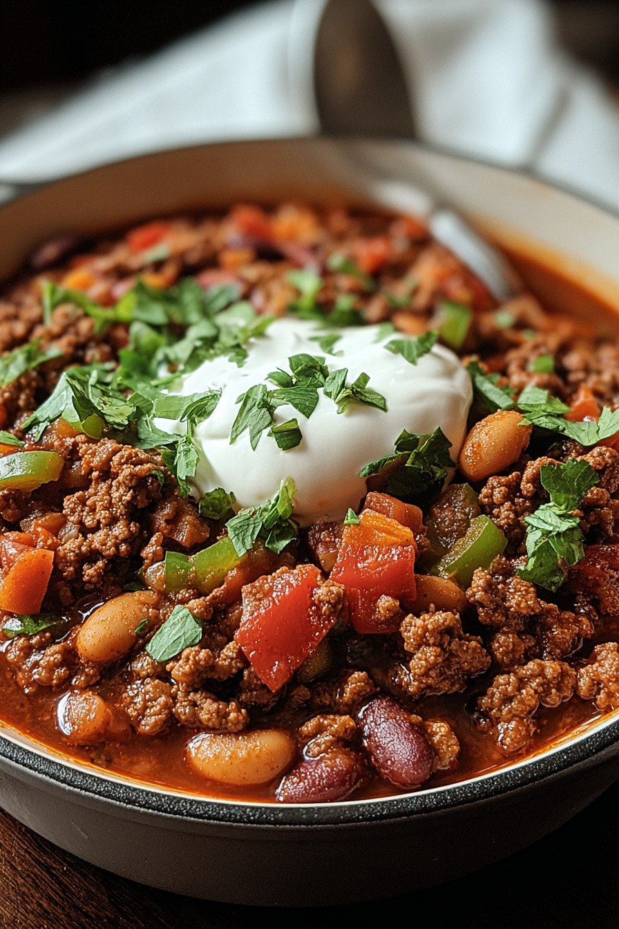 I make this pot when the house feels quiet and we want real comfort. Chili Recipes guide me when I need a sure thing. This stovetop chili recipe keeps the steps simple and the flavor big. I brown beef, bloom spices, and let it simmer. The first spoonful always lands with a deep beefy note and a warm little kick. It tastes like a hug that decided to show up right on time. We call it the best chili recipe when the table goes silent. That first thick bite with beans, tomatoes, and tender beef makes me sit up straighter. I learned to balance heat and smoke by tasting as I go. A good chili stove top recipe lives by small choices like that. Salt a pinch, taste again, then smile. The pot talks and we listen. I stash a jar of my best chili seasoning recipe in the pantry. It is simple and bold. Ground beef leads the way, which puts this in my best ground beef recipes list. Want a lighter bowl that still hits the spot I skim the fat and use lean meat and lots of beans, a healthy beef chili recipe that still feels like dinner. Grab your favorite spoon, call whoever is home, and let the steam fog the window while we ladle big bowls.
