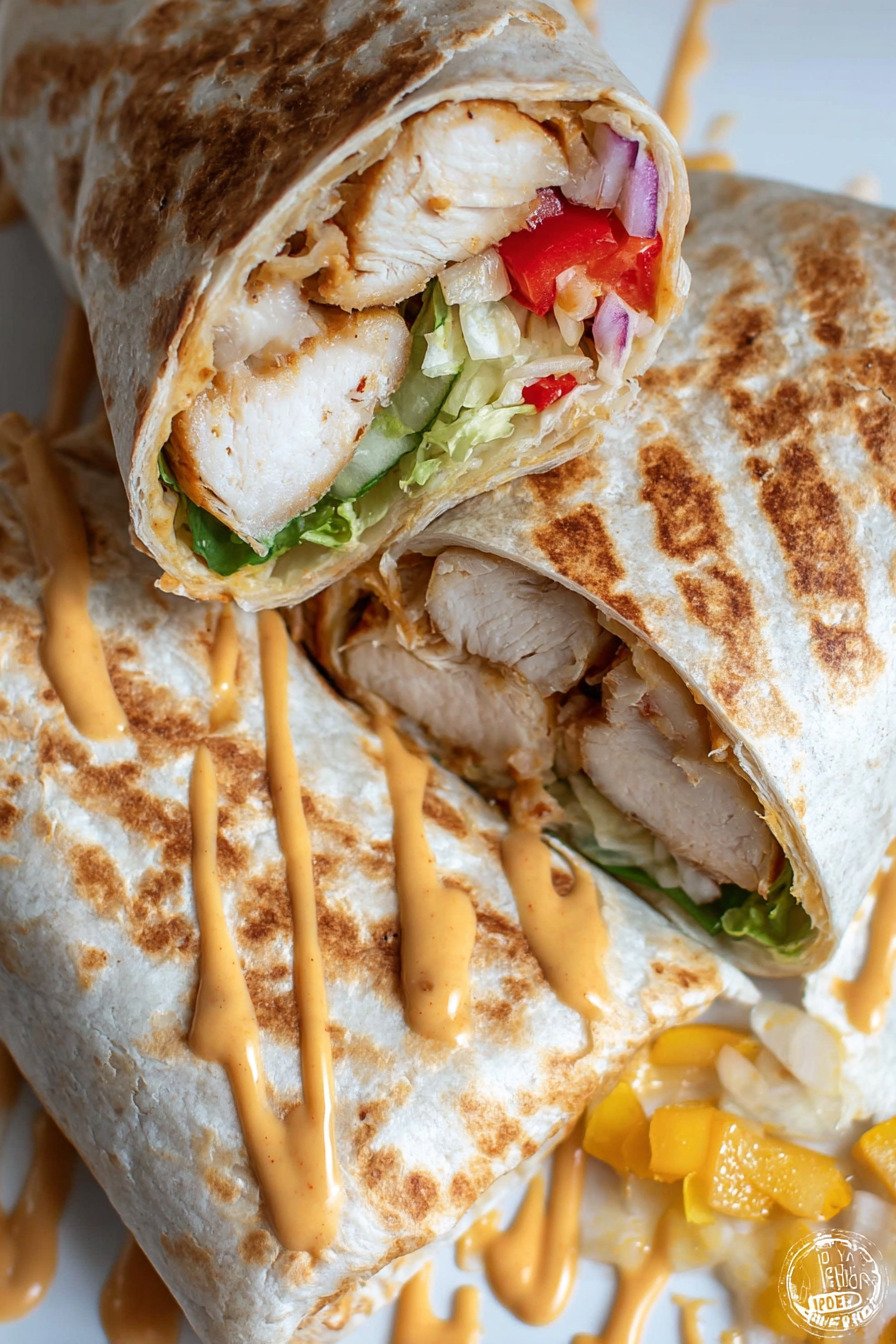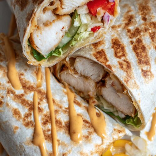 If you are craving a bold and satisfying chicken burrito recipe, this chipotle ranch grilled chicken burrito is packed with smoky flavor, juicy chicken, rice, beans, cheese, and a creamy sauce that brings everything together beautifully. It is the kind of meal that feels hearty enough for dinner but easy enough to make any night of the week. What makes this recipe especially fun is how it brings together the flavors people love in a chicken burrito bowl recipe, a burrito recipe chicken filling, and even a classic burrito recipe all in one handheld meal. The smoky heat in the sauce gives it that chipotle burrito recipe vibe, while the creamy drizzle is inspired by a delicious chipotle ranch dressing recipe that adds richness to every bite. This grilled wrap is a great choice when you want something fresh, filling, and family friendly. Even though it is different from a grilled chicken wings recipe, it shares that same irresistible grilled flavor that makes simple chicken dinners so appealing. Once you toast the burrito until golden and crispy, this chicken burrito recipe becomes one you will want to make again and again.