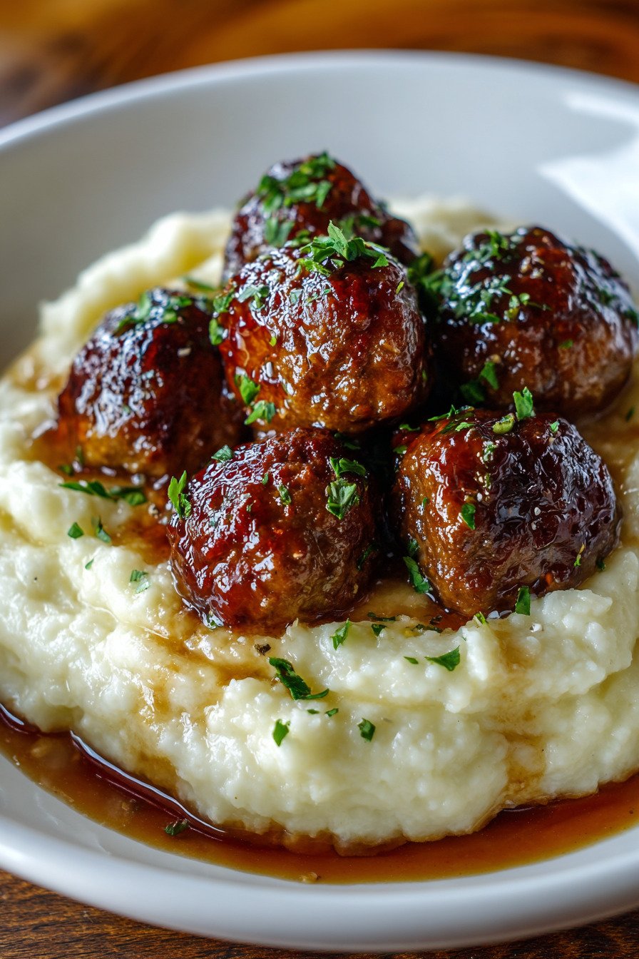 - 9 Salisbury Steak Meatballs with Garlic Herb Mashed Potatoes
