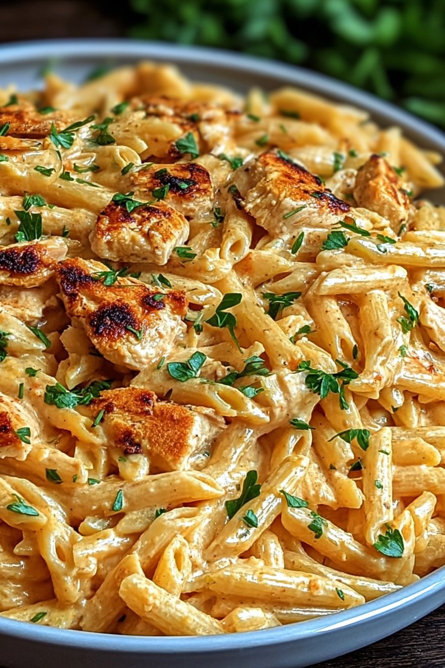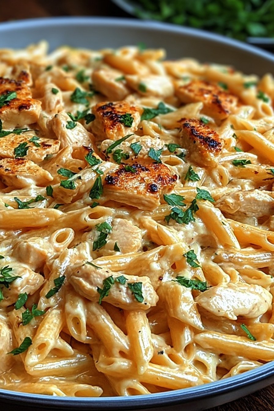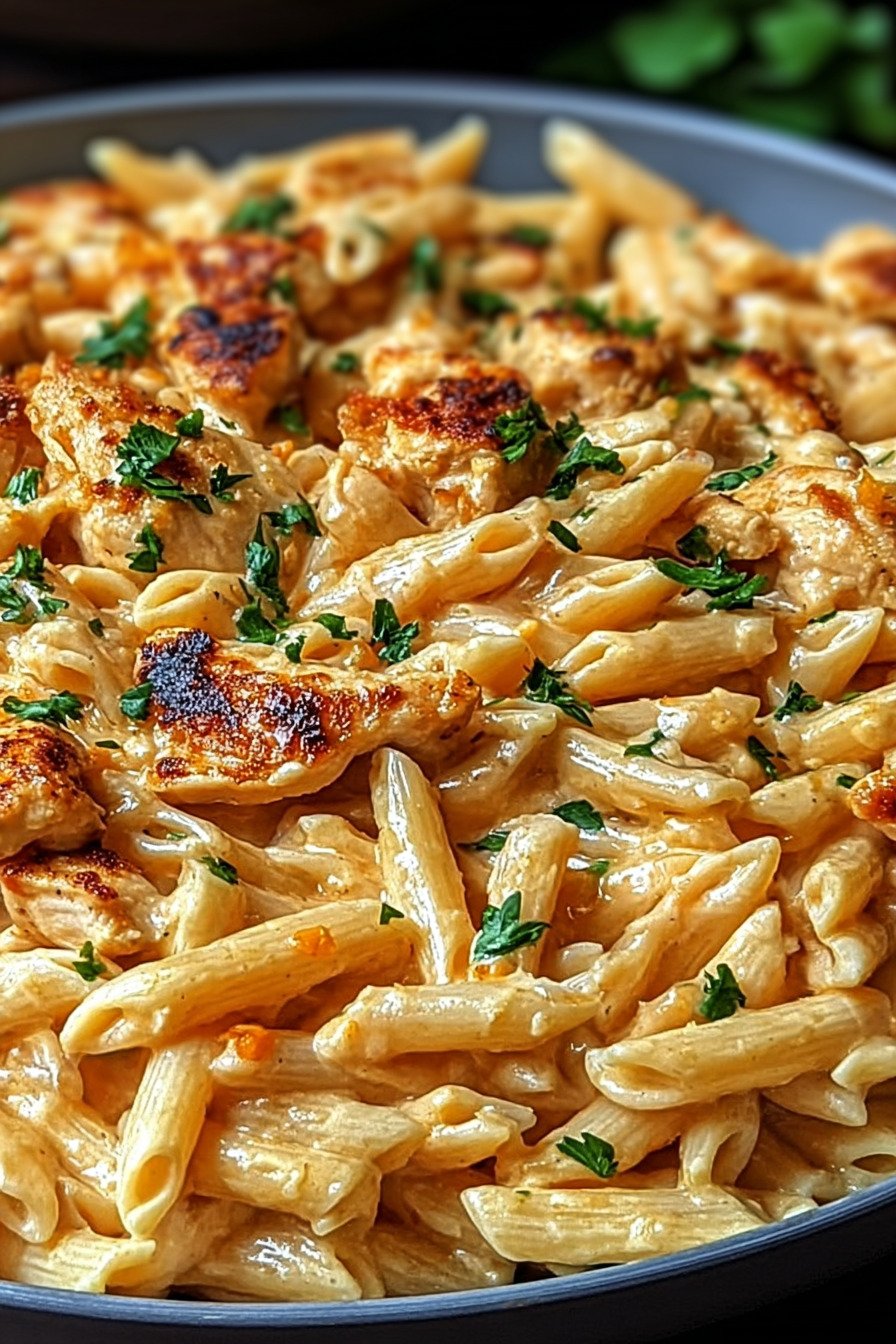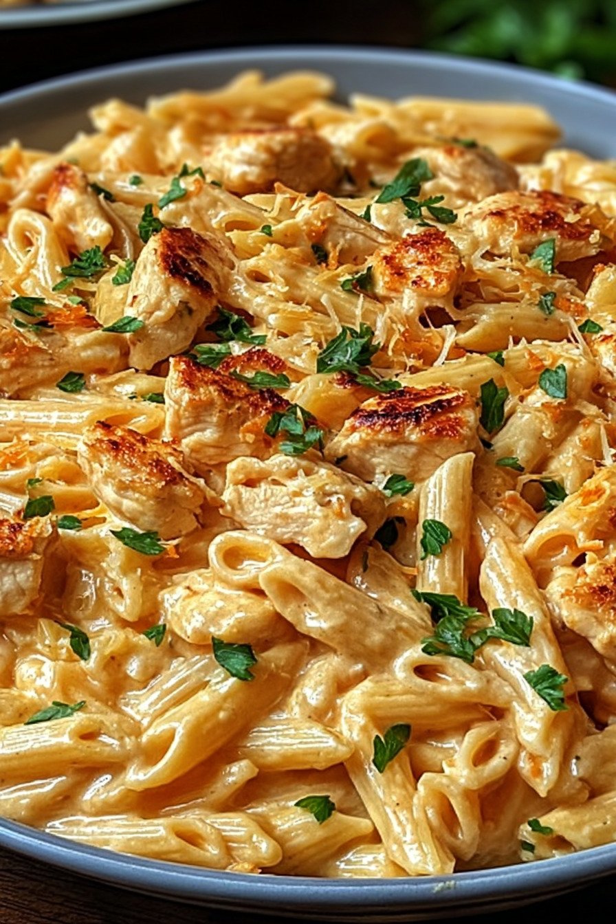 If you plan to freeze it, the chicken and sauce freeze better than the pasta, which can soften after thawing. For best results, freeze the creamy chicken mixture separately and cook fresh pasta when you are ready to serve. That way, the texture stays much more appealing.