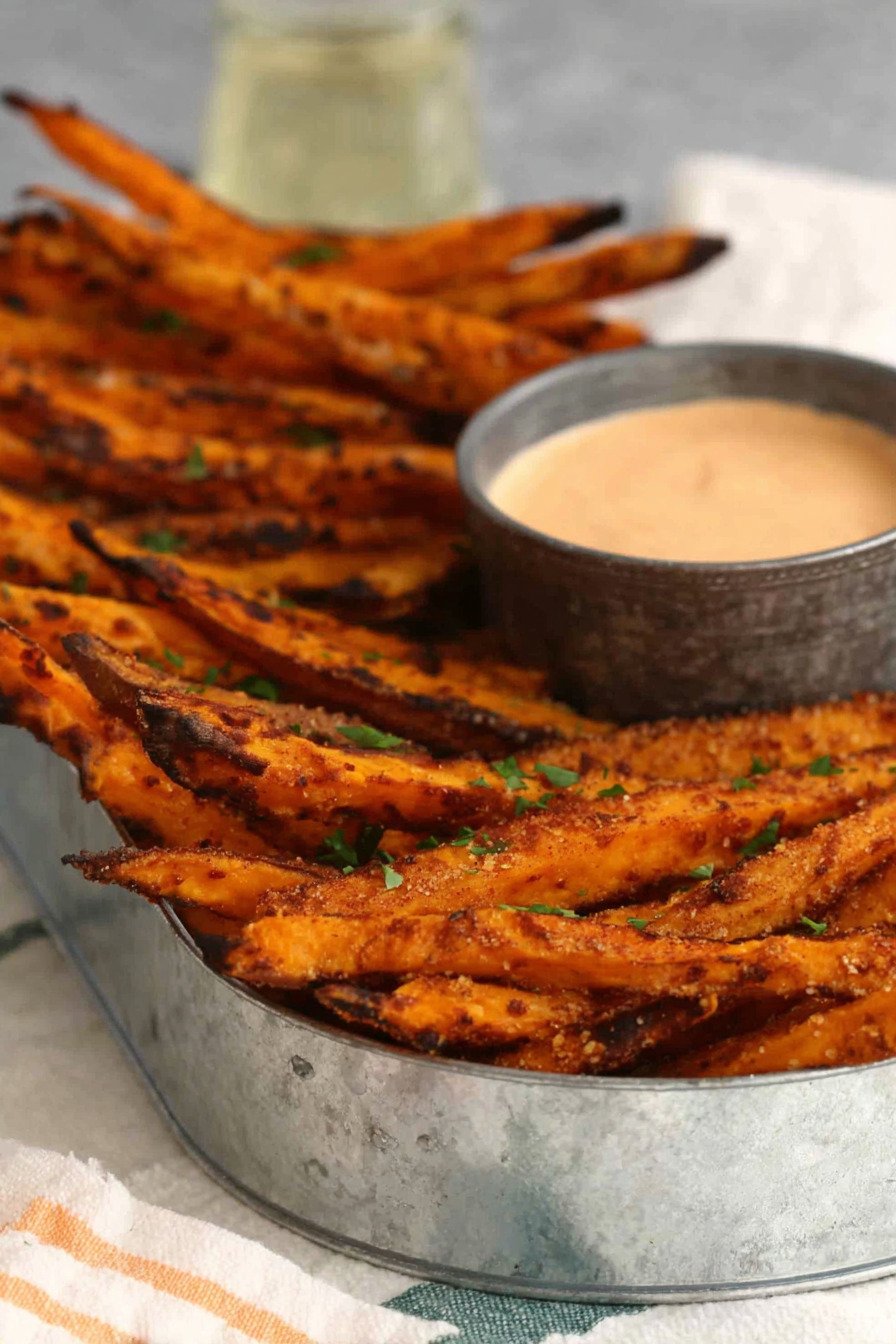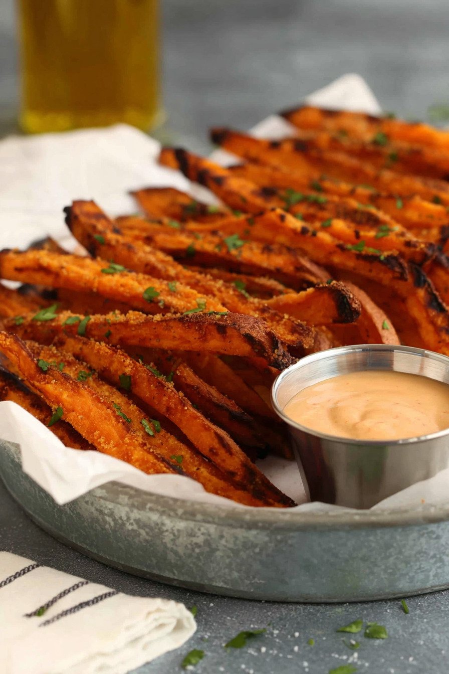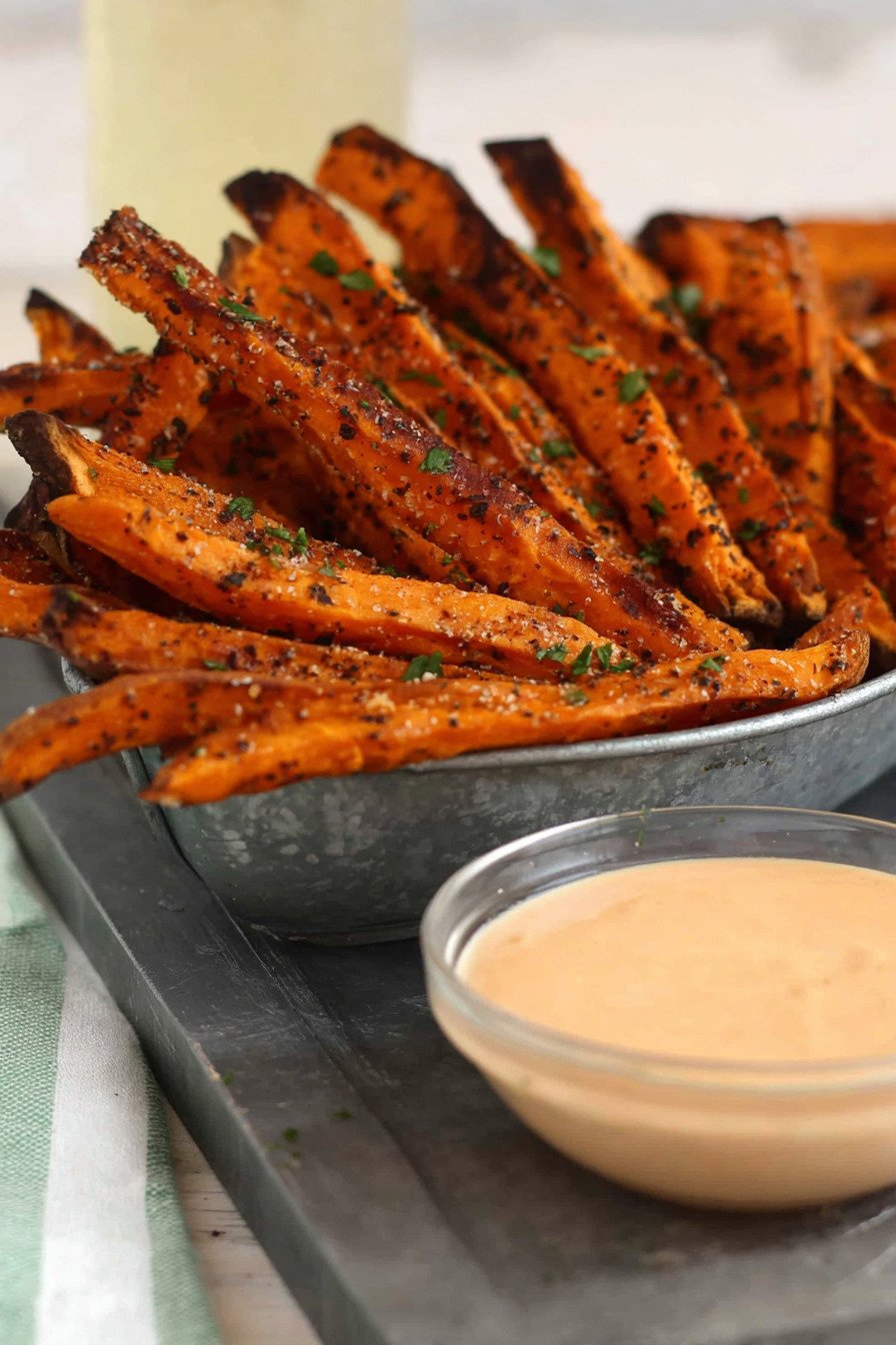 - 3 large sweet potatoes, peeled and cut into thin fries