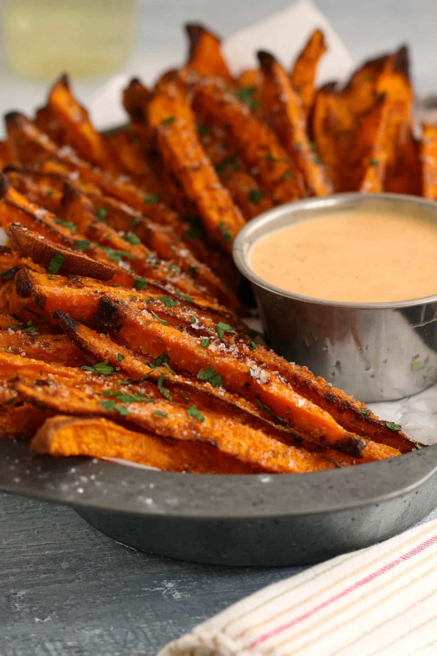 Sweet Potatoes The star of this sweet potato fries recipe, sweet potatoes provide natural sweetness and a creamy interior that contrasts beautifully with crispy edges.