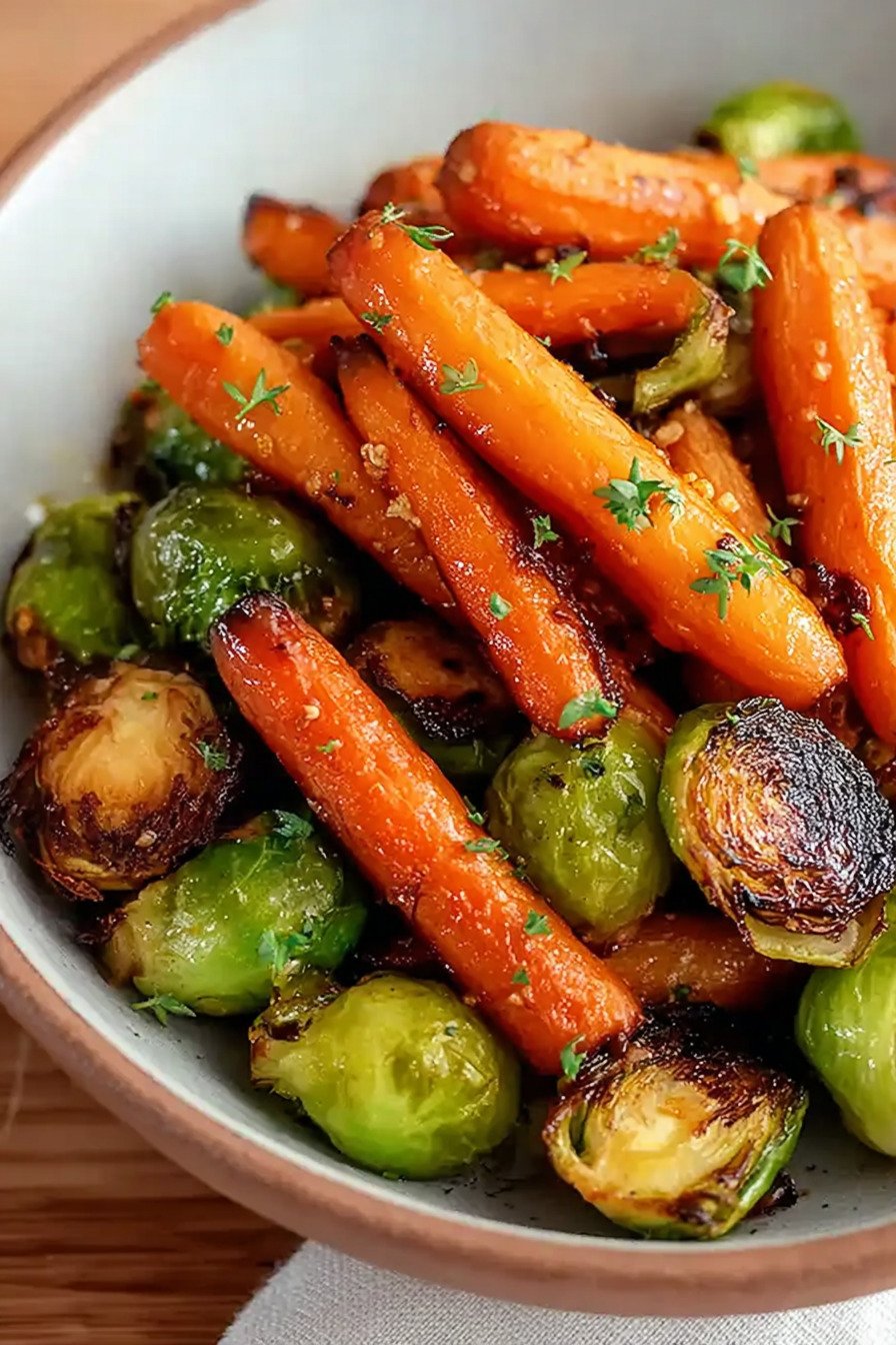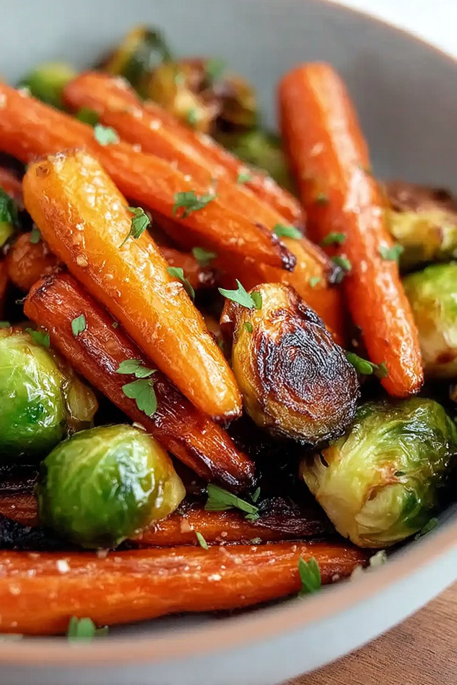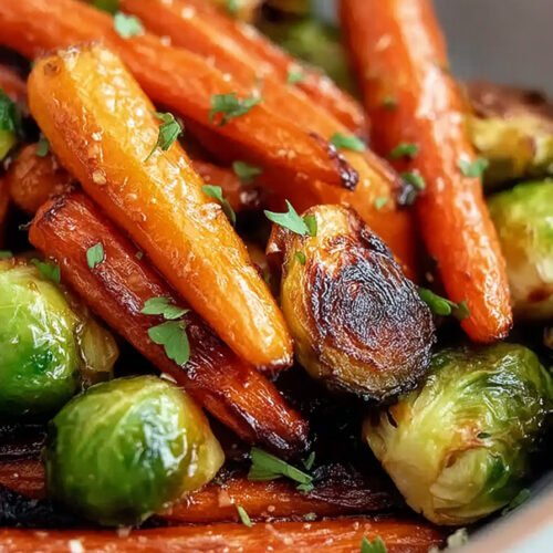 If you love flavorful vegetable sides, this Crispy Maple Glazed Carrots and Brussel Sprouts dish is one of the most satisfying brussel sprout recipes you can make at home. Roasted until golden and slightly caramelized, the vegetables develop a delicious crisp texture while the maple glaze adds a sweet and savory balance. It’s an excellent choice for anyone searching for easy brussel sprout recipes that feel both comforting and elegant. The natural sweetness of carrots pairs beautifully with roasted sprouts in this maple glazed carrots recipe, creating a colorful dish that works perfectly for weeknight dinners or holiday meals. Because the vegetables are oven roasted, this recipe easily fits into healthy brussel sprout recipes while still delivering bold flavor and crisp edges similar to baked brussel sprout recipes. Whether you’re planning a plant-based meal or just want a fresh vegetable side, this dish can also fit perfectly into vegan brussel sprout recipes. You can even adapt the cooking method to work with grilled brussel sprout recipes by finishing the vegetables on the grill for a smoky twist. However you serve it, this crispy maple vegetable dish quickly becomes one of the most reliable brussel sprout recipes for everyday cooking.