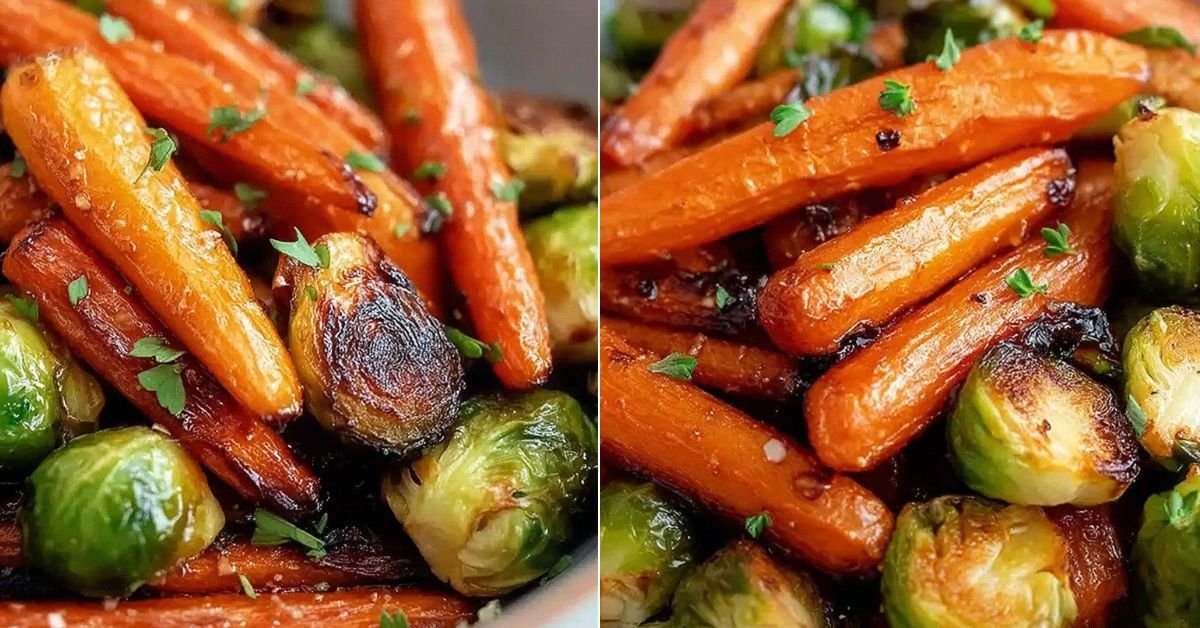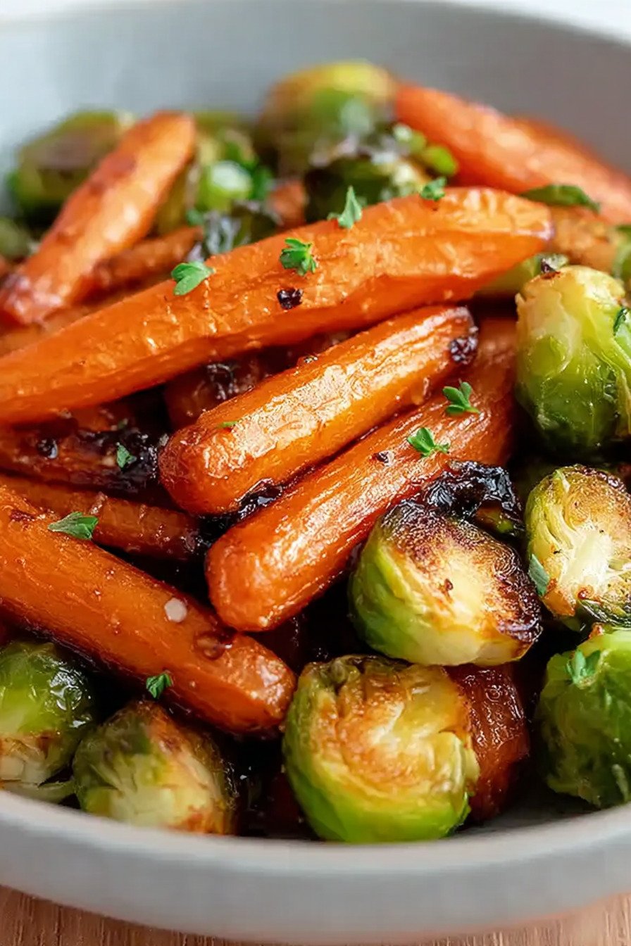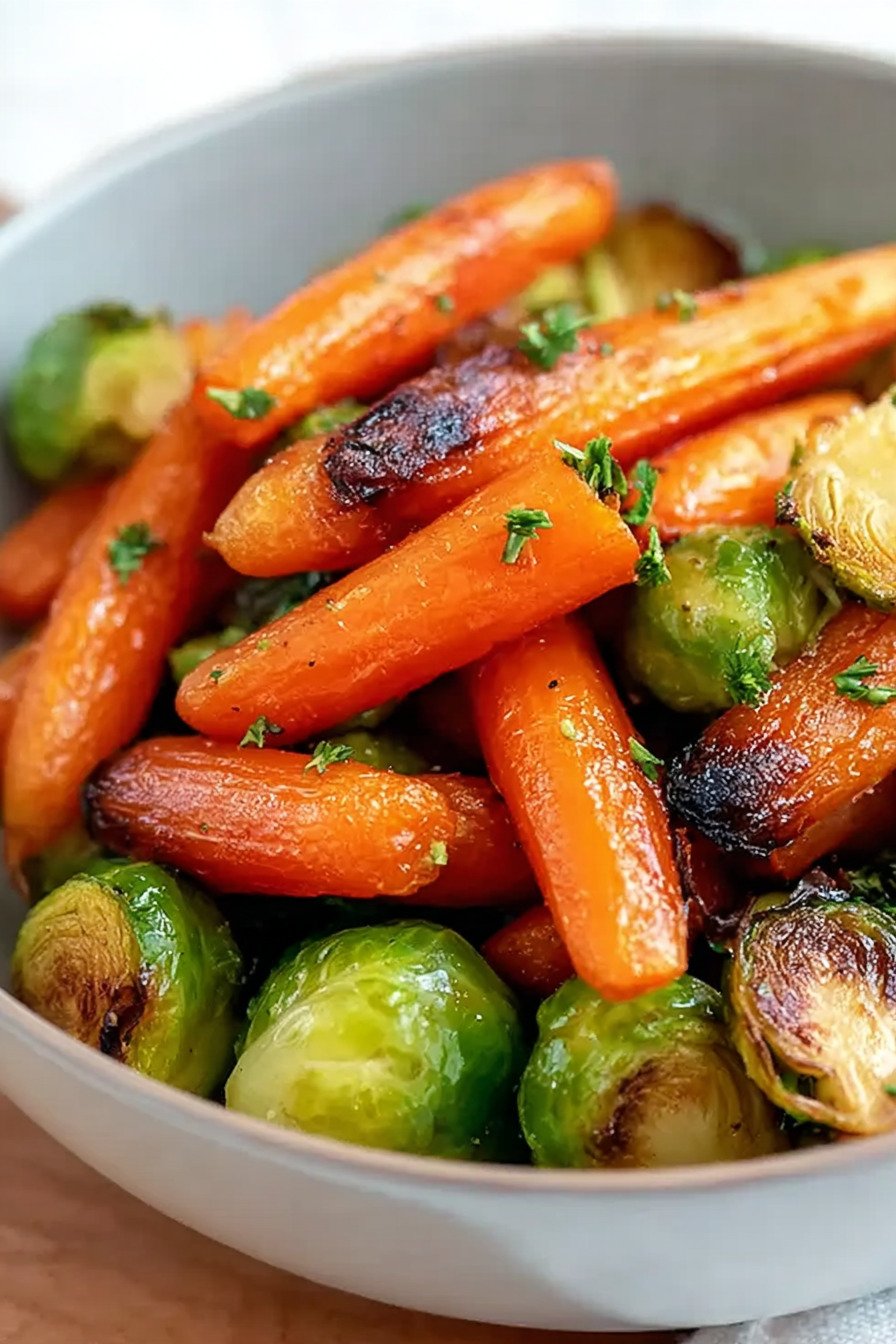 Crispy Maple Glazed Carrots and Brussel Sprouts – Easy Roasted Vegetable Side