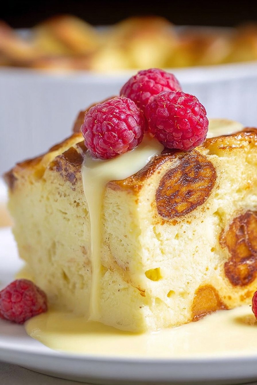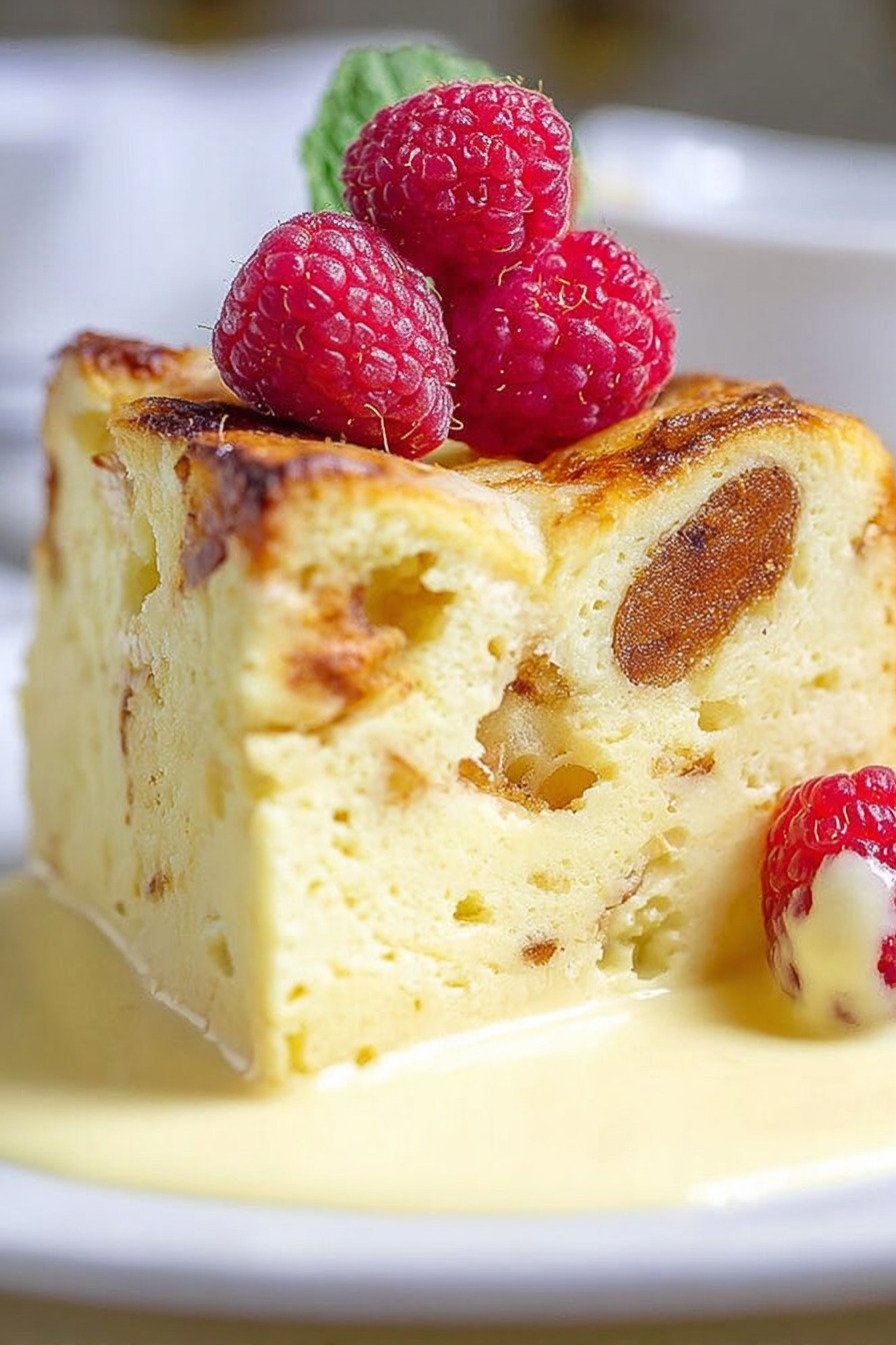 Step 4 Bake until the top is lightly golden and the center is set but still tender. The pudding should look puffed and smell warm, sweet, and deeply comforting when it is ready.