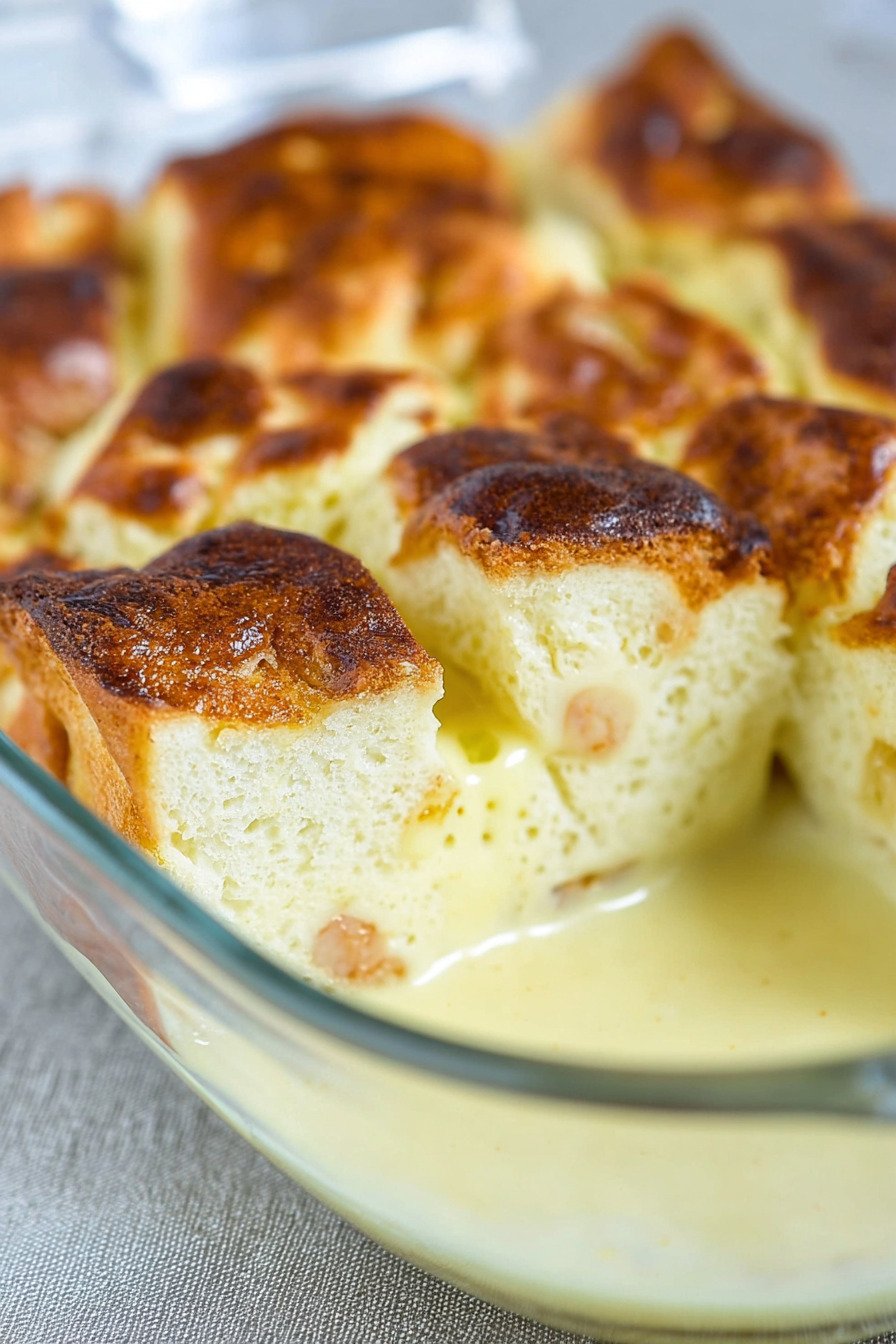 Whole Milk Whole milk adds moisture and helps create a smooth, tender custard. It keeps the interior soft and luscious without making the pudding feel too heavy.