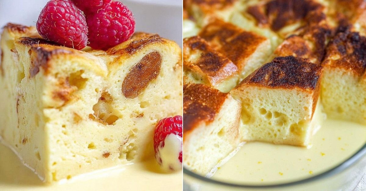 Custard Bread Pudding Recipe with Vanilla Sauce