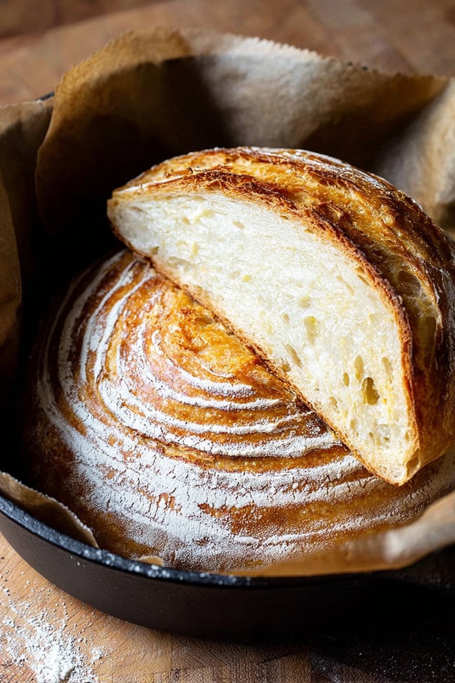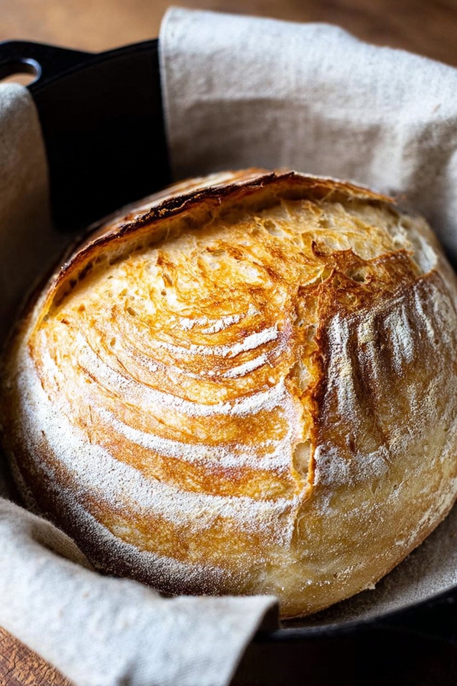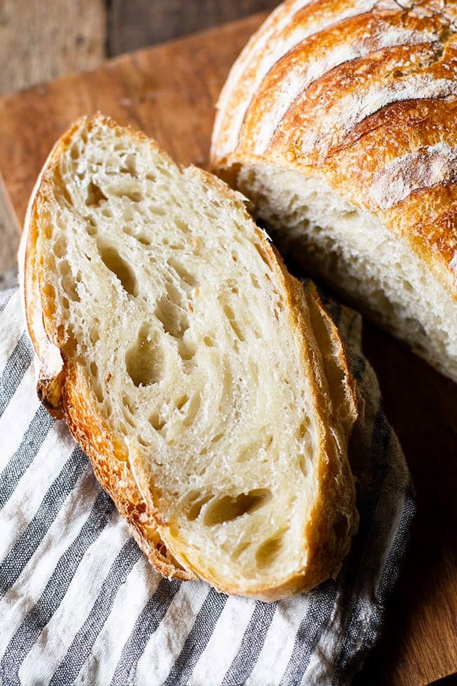 Let the loaf cool fully before storing. I wrap it in a clean towel and leave it on the counter. The crust stays firm and the inside stays soft.