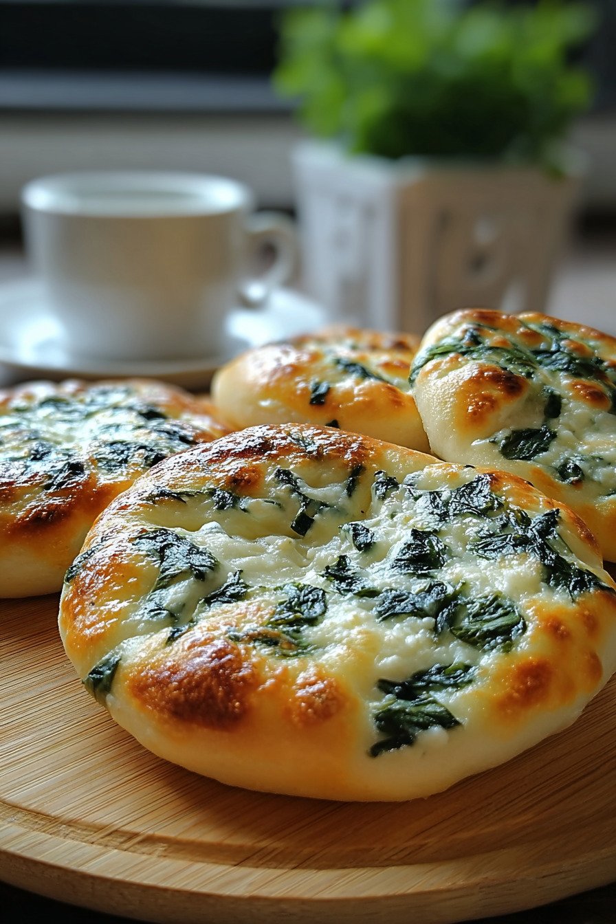 Fresh spinach I chop it fine and squeeze it dry. The leaves fold into the dough and melt during the bake. The green flecks look bright on the cut surface and the flavor stays mild and fresh. This checks the box for easy spinach recipes and it feels like a kind choice for a regular morning.