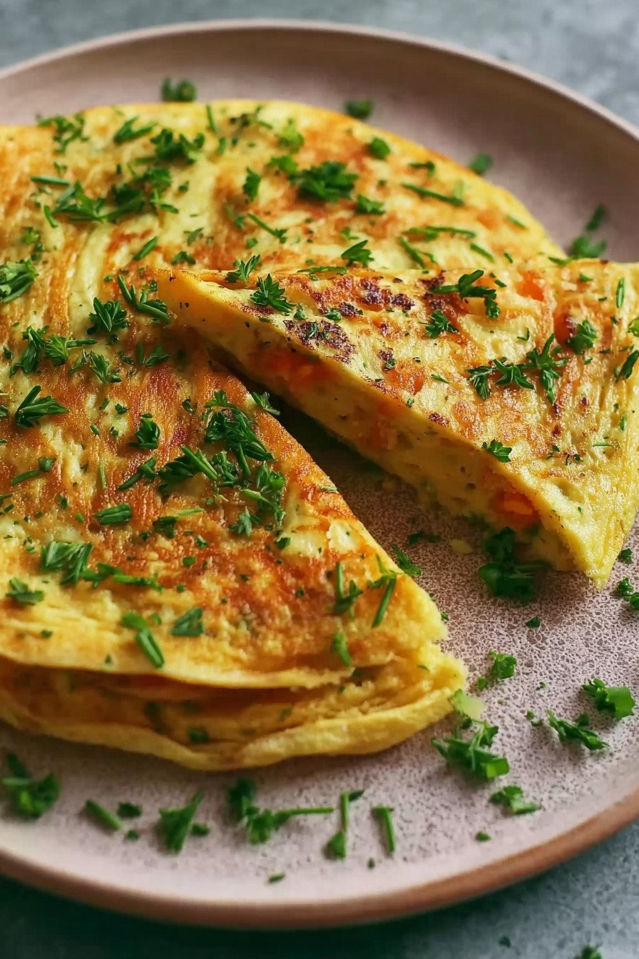 I am Lisa from Cook Simple Recipes at https www cooksimplerecipes com and I cook this omelette when mornings ask for calm. The batter stirs fast and cooks fast. The flavor stays clean and bright. The fold lands tender and light. We get a win before coffee cools. This dish fits the idea of an Easy Vegetarian Breakfast and I say that twice here since it matters to busy folks. Easy Vegetarian Breakfast means real food with low fuss. It means one pan and a plate that clears.