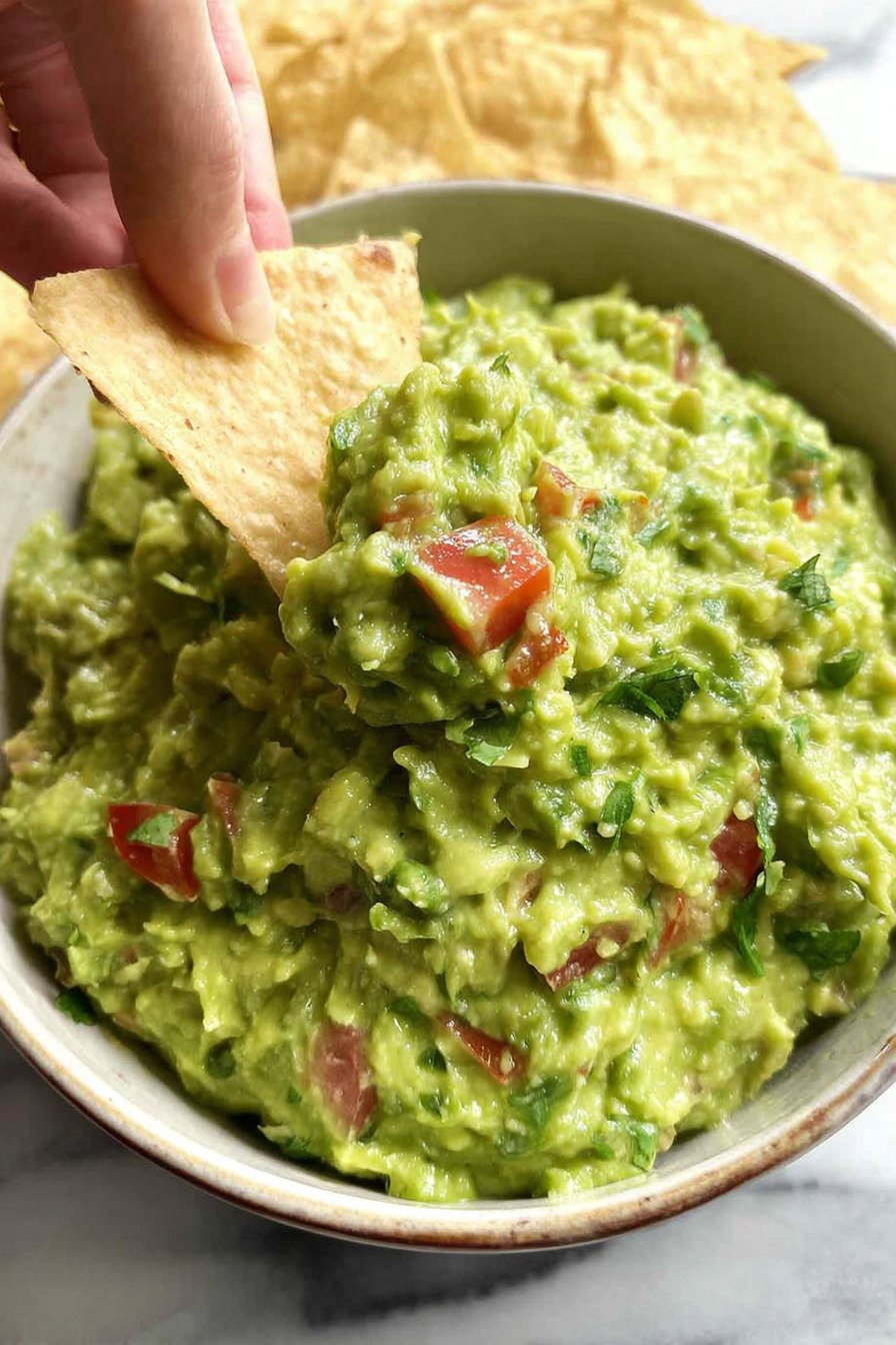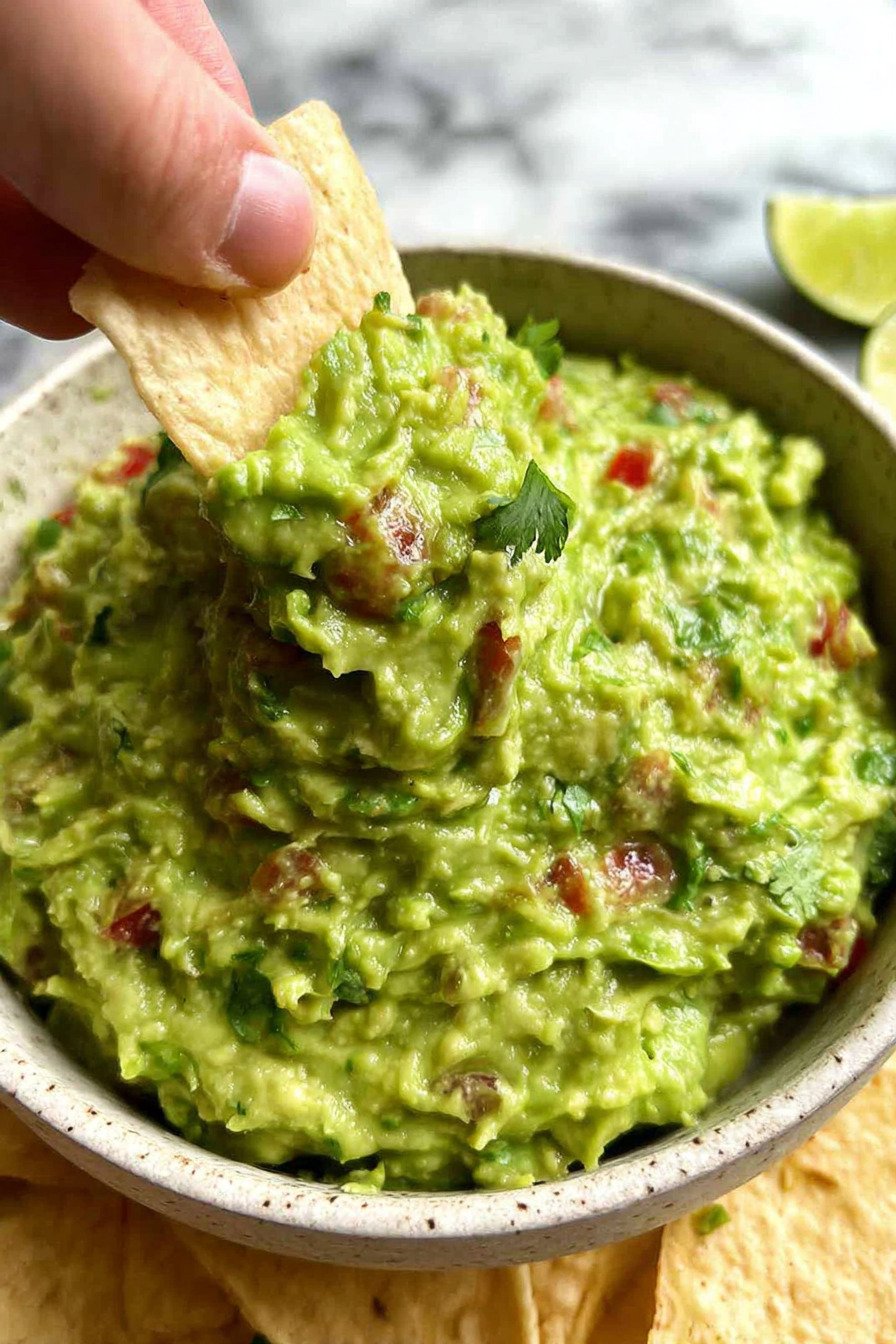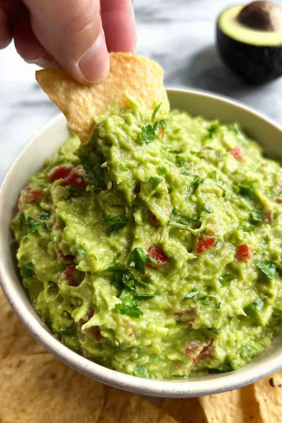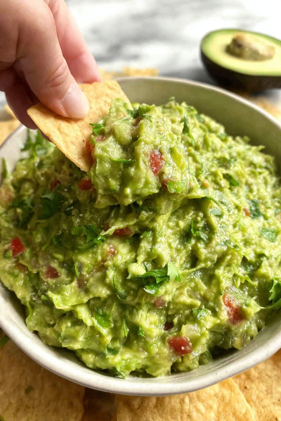 I make the base a few hours early when guests plan to stop by. I mash the avocados with lime and salt and cover the bowl with plastic pressed on the surface. I chill it. The air stays out. The color stays bright. When guests arrive I fold in onion tomato cilantro and jalapeno. The texture stays fresh and the mix tastes like I made it right then.