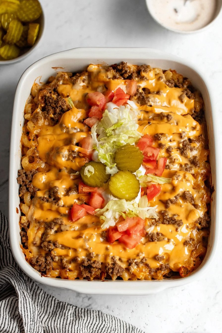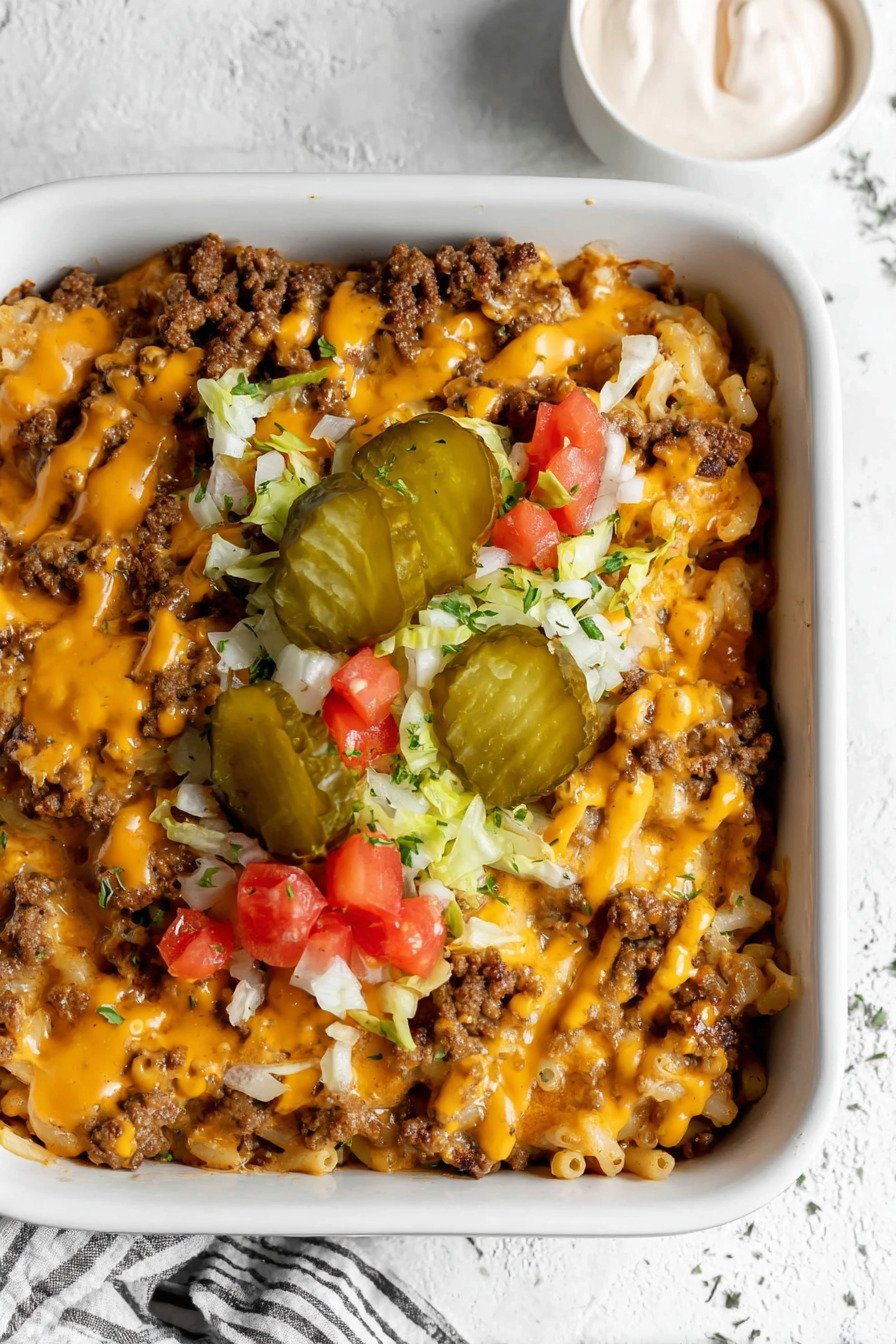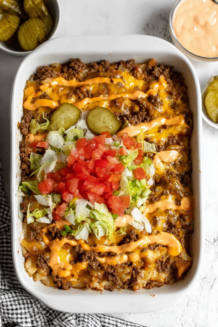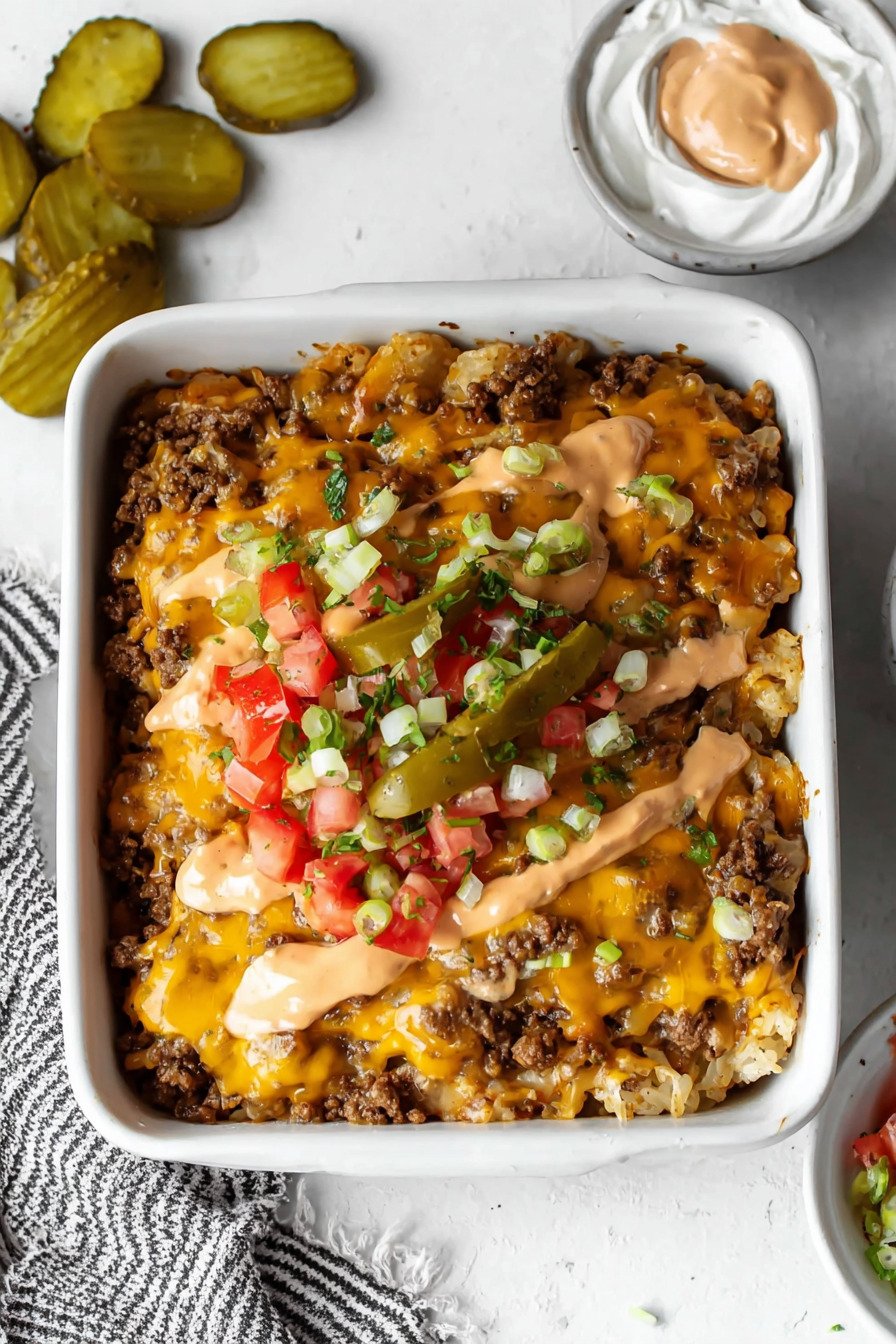 For added texture, consider topping the casserole with fresh shredded lettuce and extra diced pickles right before serving. This simple finishing touch recreates the classic burger experience while keeping the dish fresh and vibrant.