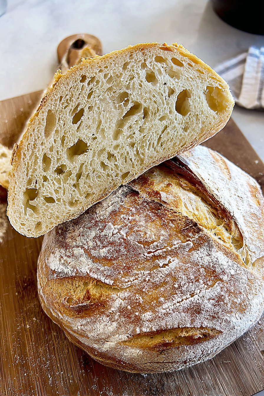 A Dutch oven makes a major difference because it traps steam and encourages that classic artisan crust, but you can still bake a beautiful loaf using a baking stone and a steam tray if needed. Lightly flouring your hands and work surface also helps keep the dough manageable without adding too much excess flour that could make the crumb dense.