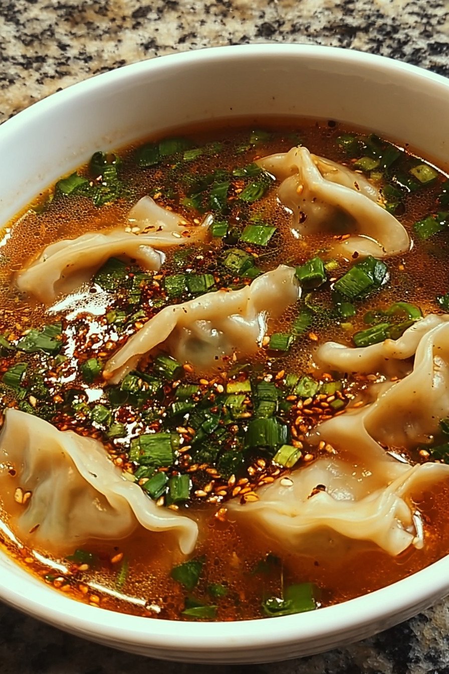 I love a bowl that warms the hands and the mood. This potsticker soup does both. Steam rises. Ginger wakes up the room. I hear the tiniest sizzle when the dumplings slip in and I grin. On busy nights I want comfort that plays nice with the clock and the dishes. This gives me that. We build flavor fast with green onion, garlic, and a splash of soy. The broth tastes clean and rich. Tender dumplings float and bump the spoon. I press one, it springs back. Good sign. A handful of spinach softens in seconds. The soup tastes bright and savory. It sits in the sweet spot where easy meets cozy. Soup Recipes fit right into my routine and this one proves it. I keep a bag of frozen potstickers on hand for nights like this. The pot hums. I stir and breathe in the steam. It feels like takeout that listened to what I needed. Asian Recipes Authentic and Authentic Chinese Food inspire the profile here. Asian Food Recipes guide the balance. Baked French Onion Soup reminds me to go slow with heat. 7 can taco soup recipe easy nudges me to keep it simple and smart. We eat, we relax, we save the rest.