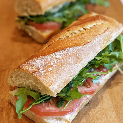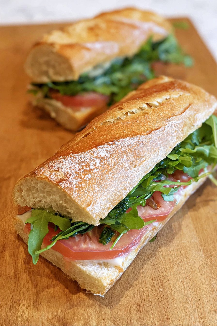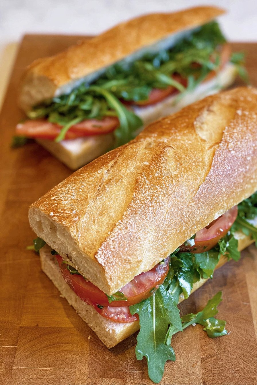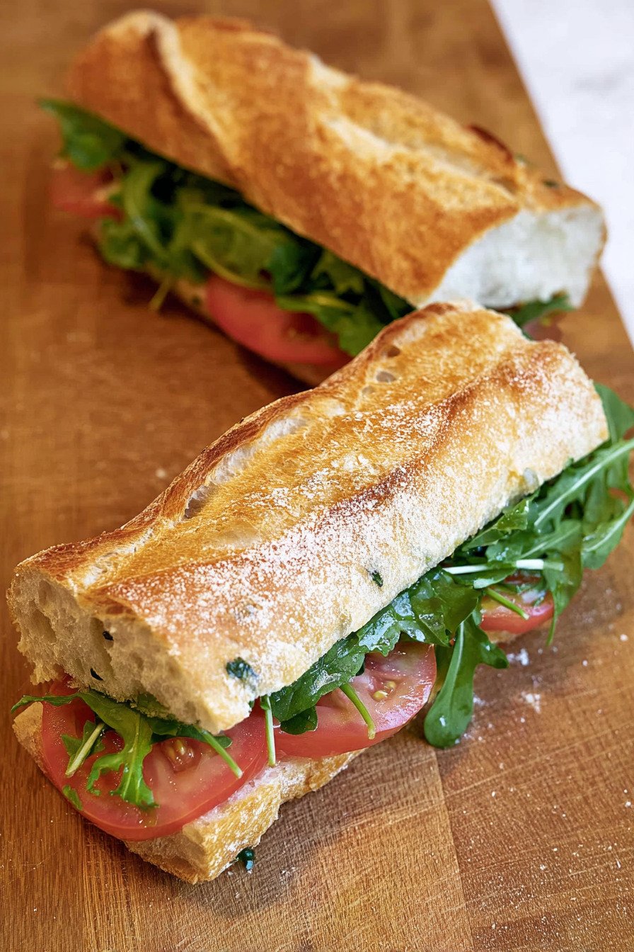 You get quick prep and clean flavor. You control the build with cheese or no cheese and toast or no toast. I use pantry stuff and a ripe tomato from the counter. The baguette waits on the board and the greens sit cold and perky. I stack and I smile. It works for a quick vegetarian sandwich when friends stop by. It works for a late solo dinner when the house goes quiet. I write this as a cook who likes wins that taste bright and feel doable on any weeknight.