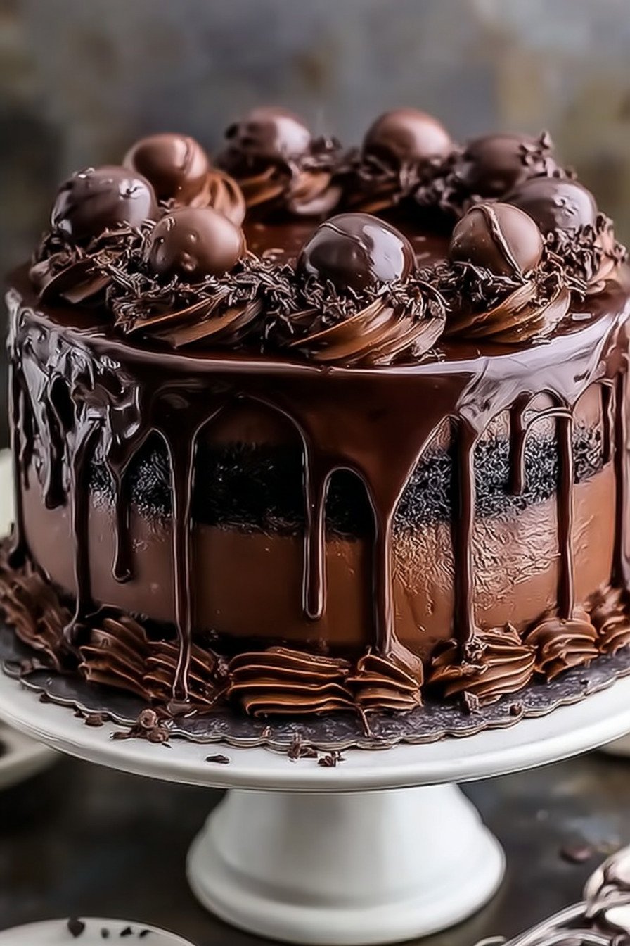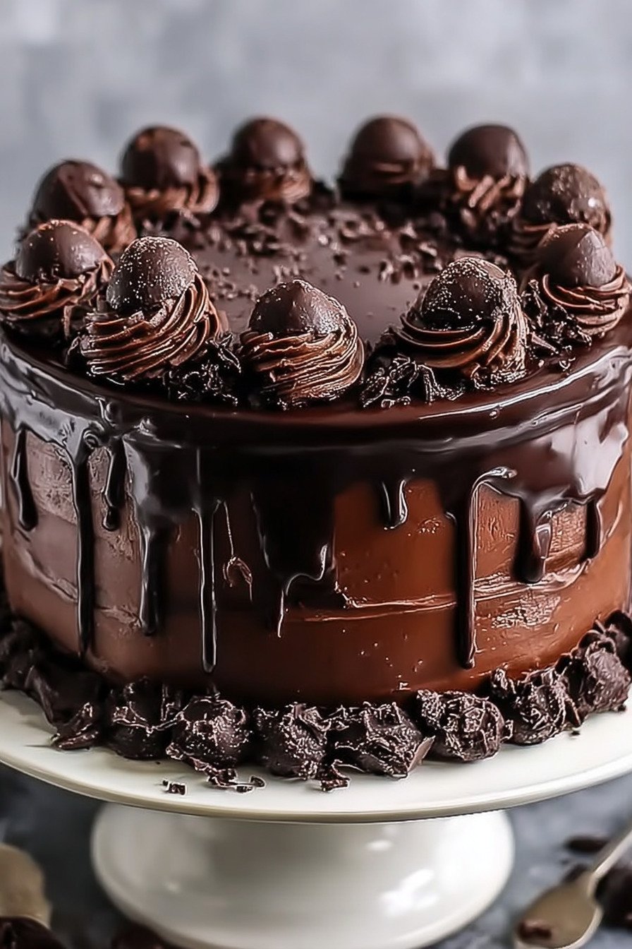 When we serve guests I add fresh berries. Strawberry chocolate cake slices always vanish first. For anyone who loves a double chocolate cake with ganache this version delivers without fuss. On busy weeks I bake the layers and freeze them and I sleep well knowing dessert is set.