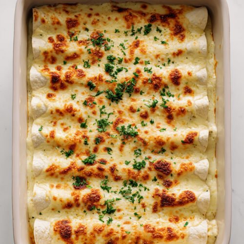 If you’re refrigerating them before baking, just add a few extra minutes to the cooking time. The sauce soaks into the tortillas a bit, making them extra soft and rich. I swear it’s like the enchiladas took a little nap and woke up even better.