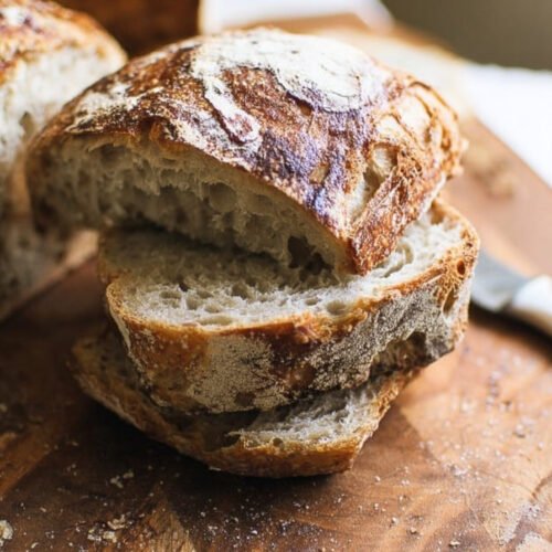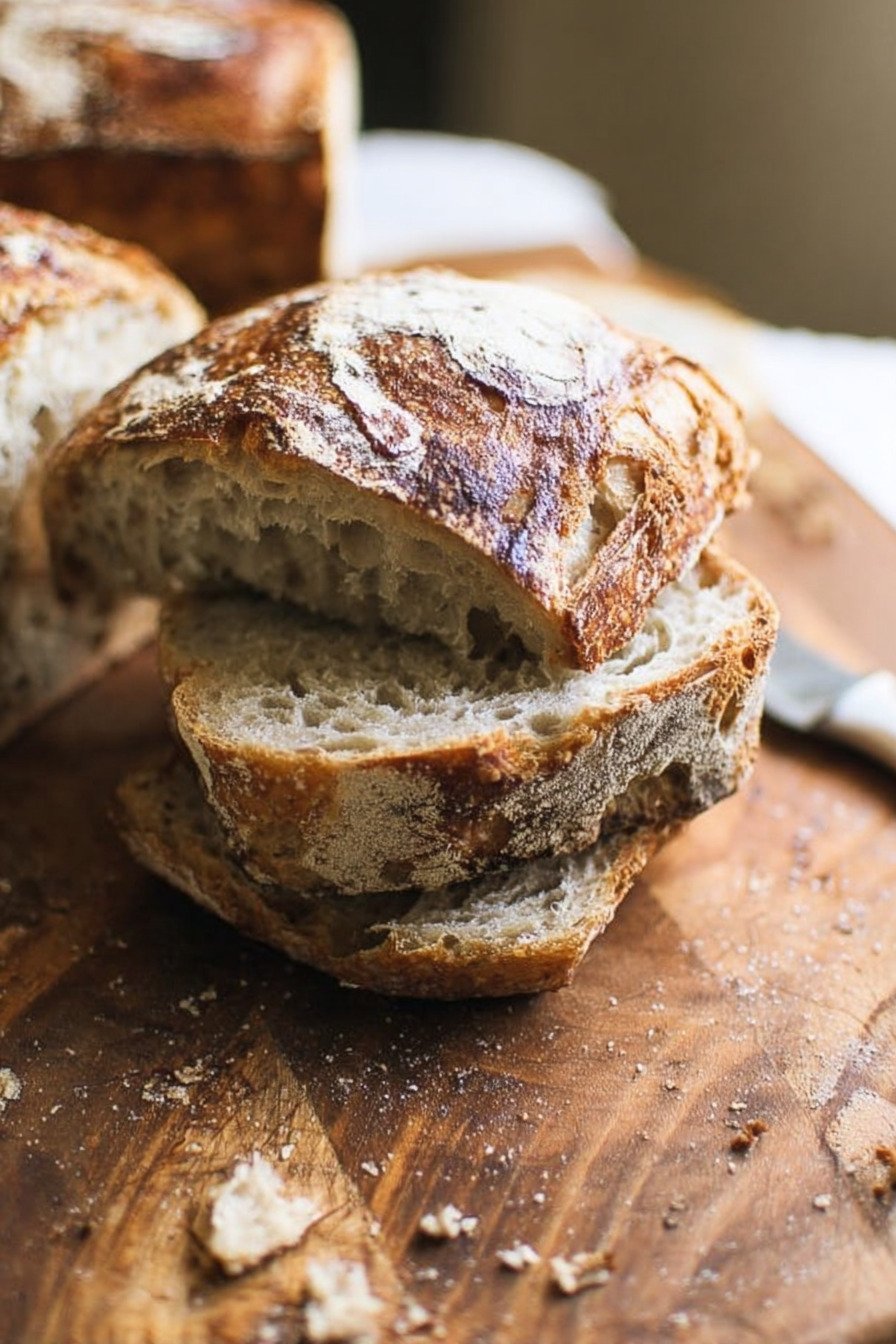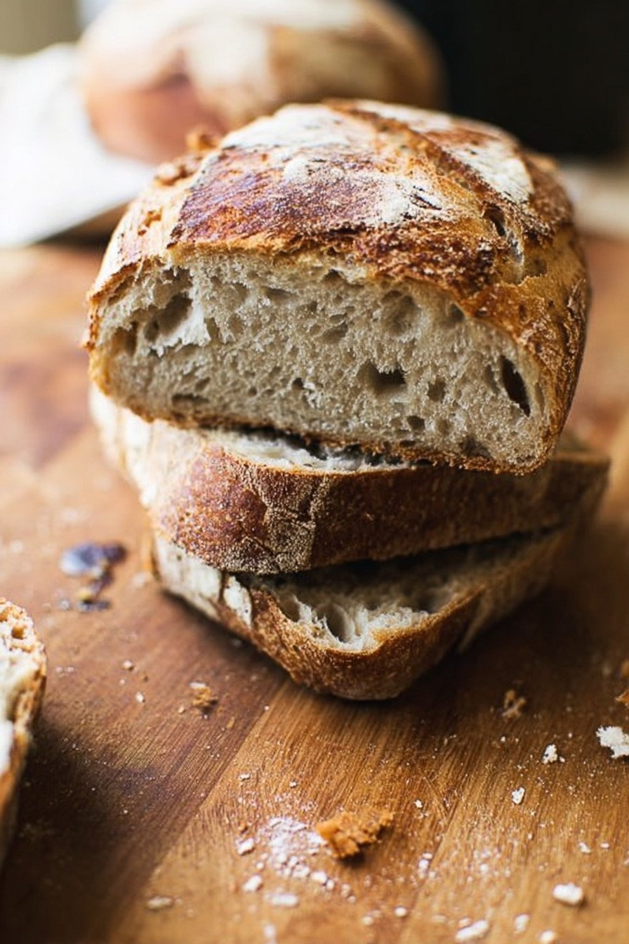 Once cooled, store the loaf at room temperature with the cut side down on a board. This keeps the crumb soft and the crust firm. I avoid plastic when possible so the crust can breathe.